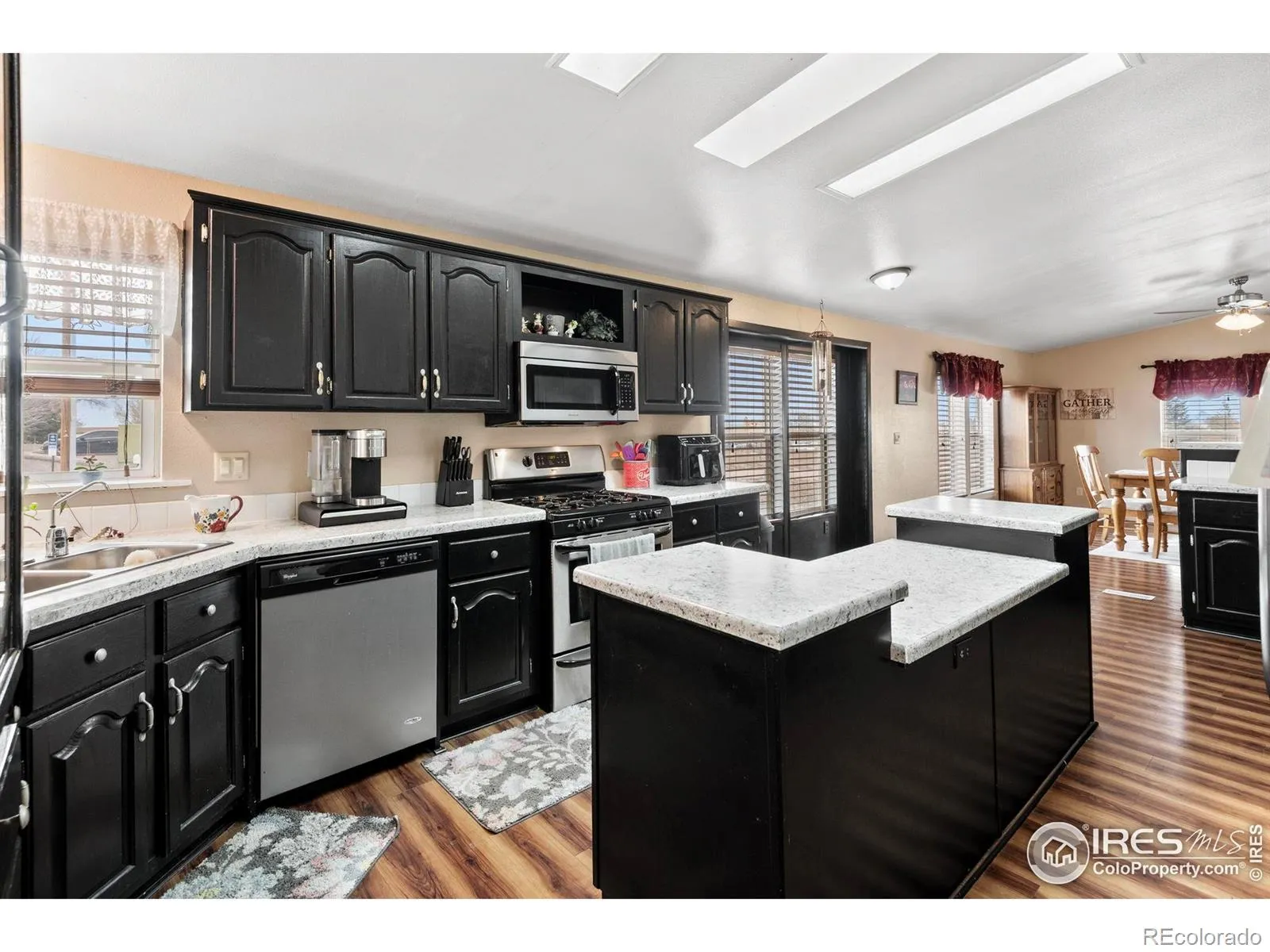 Small town living, family home on .33 acres. 3 car garage (24 x 38) that you can pull a full size mega cab truck in and organize the space. Back yard has turf installed to save on watering costs. New furnace, new ac, newer roof, new counter tops in kitchen, and new storm doors. The primary bedroom has a 5 piece bath and walk in closet. This Manufactured Home is in great condition.