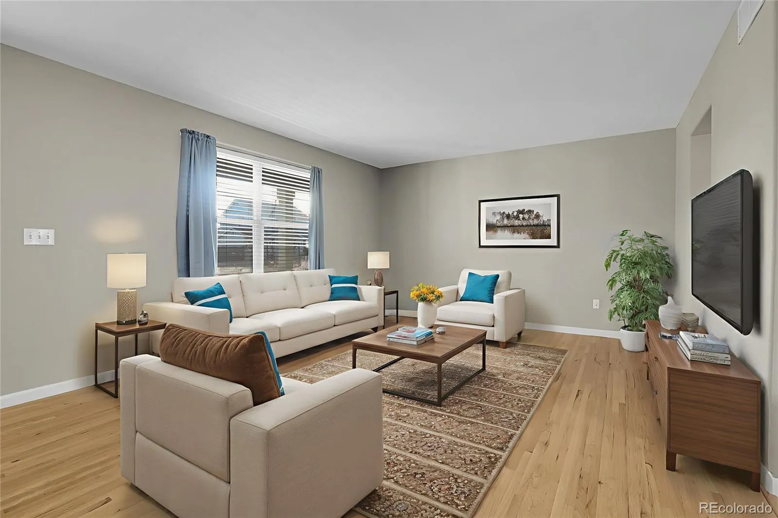 Welcome home to this beautifully maintained 5-bed, 3-bath property in the heart of Strasburg! This single-family home offers over 2,000 sq ft of comfortable living space with an open concept layout, bright natural light, and neutral finishes throughout. The spacious kitchen and dining area flow seamlessly into the living room — perfect for everyday living or entertaining. Enjoy the large fenced backyard, mature landscaping, and covered patio for relaxing evenings outdoors. Conveniently located near local schools, parks, and easy I-70 access for a quick commute to Denver Metro area. Small-town charm make this a must-see!