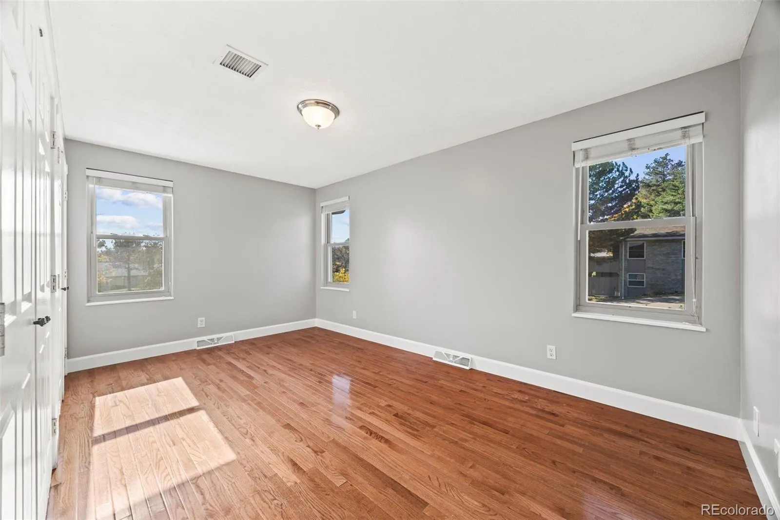 Welcome to a beautifully updated custom split-level home on a large half-acre corner lot in the coveted Columbine Lakes/Three Ponds neighborhood. Step into a bright, welcoming foyer accented by a stained-glass transom window, wainscoting, and rich hardwood flooring. The open design leads upstairs to sunlit living and dining spaces with hardwood floors and large windows framing beautiful outdoor views. The remodeled kitchen features Silestone countertops, hardwood cabinetry with new hardware, and new Samsung stainless steel appliances (2025) on refinished hardwood floors. From the dining area, step out to a spacious covered deck—perfect for entertaining or quiet evenings enjoying Colorado’s weather. The main level includes a relaxing primary suite with a walk-in closet and remodeled ensuite bath featuring a seamless Euro glass shower, glass block accents, modern vanity, and updated lighting. Two additional bedrooms and a beautifully updated full hall bath with a jetted tub and new vanity complete this level. Downstairs, the walkout lower level is warm and inviting with another bedroom and a large family room centered around a painted brick gas fireplace. A separate room with a private entrance offers ideal space for a home office or study. The remodeled half bath and laundry room complete the lower level. Outside, the home is surrounded by mature landscaping, a full sprinkler system in front and back, & peach and apple trees. An oversized side-load two-car garage with southern exposure and extended driveway provide ample space for parking and play. Major updates include a new roof (2024), new furnace blower motor (2023), and hot water heater (2021). Enjoy walking distance to top-rated Wilder Elementary, the Columbine Trail, neighborhood ponds and parks, and optional access to the community pool/ clubhouse. Located minutes from Downtown Littleton, Aspen Grove, and with quick access to Denver and the mountains, this home offers the best of Colorado living.