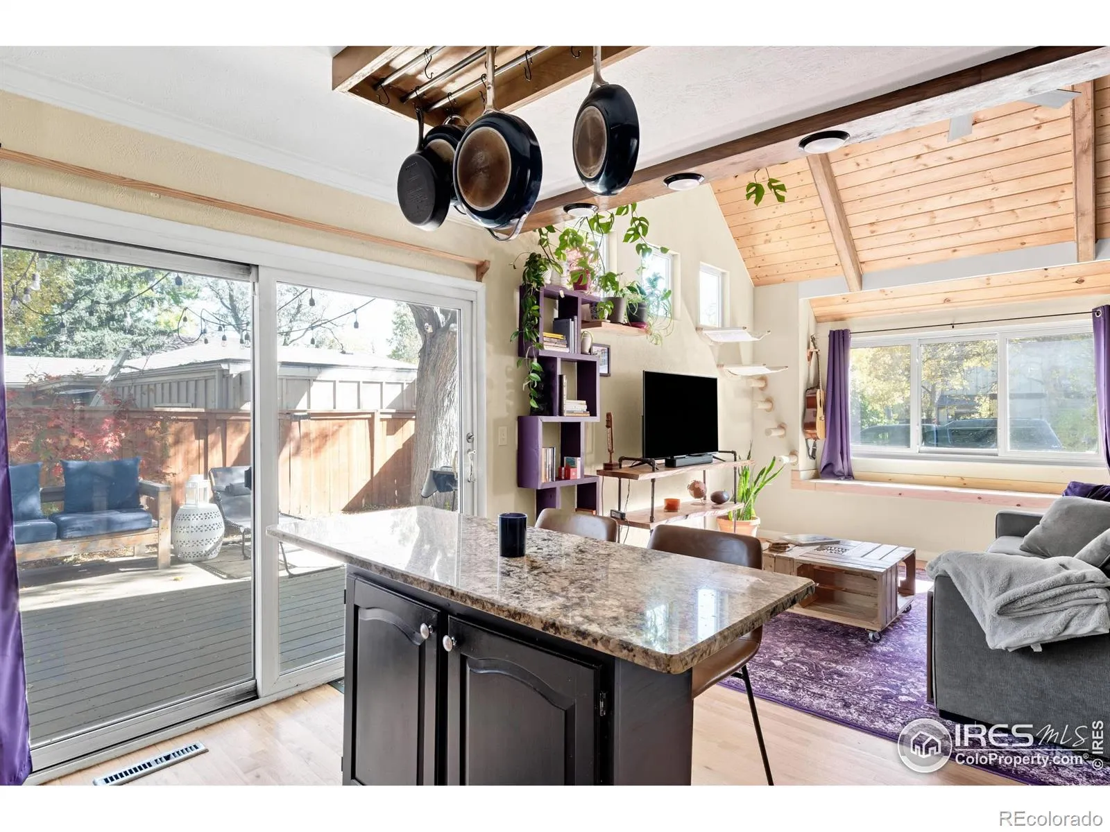 Ideally situated in Twin Lakes, this serene residence embodies a seamless balance of comfort, privacy and location. Nestled on a quiet cul-de-sac and backing to peaceful community park space, this home offers an exceptional sense of connection to nature while remaining close to local trails, shopping and dining. Inside, vaulted ceilings with warm tongue-and-groove detailing and expansive windows fill the open living area with natural light. The beautifully updated kitchen features granite countertops, stainless steel appliances, rich cabinetry and a center island perfect for gatherings. Four spacious bedrooms include a sunlit primary with vaulted ceilings, while the secondary bedrooms provide flexibility for guests or work. A laundry area and whole-house A/C are added conveniences. Escape outdoors to enjoy a large deck overlooking a shaded, fully fenced backyard with raised garden beds and mature trees – a true private retreat in one of Boulder’s most charming and quiet enclaves. Solar panels are fully owned and included that offset electric bill.