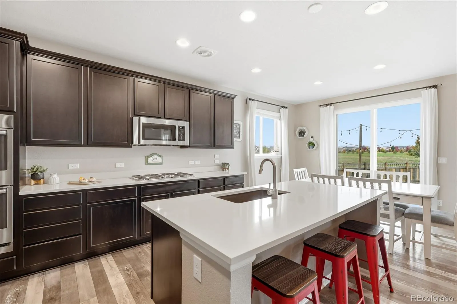 Outside, the real magic happens. The expanded patio extends into a turf backyard that’s as low-maintenance as it is perfect for year-round fun—summer BBQs, impromptu soccer games, or simply relaxing with a glass of wine as the sun dips behind the mountains. The corner lot gives you extra breathing room and that wide-open feel you’ll love coming home to.