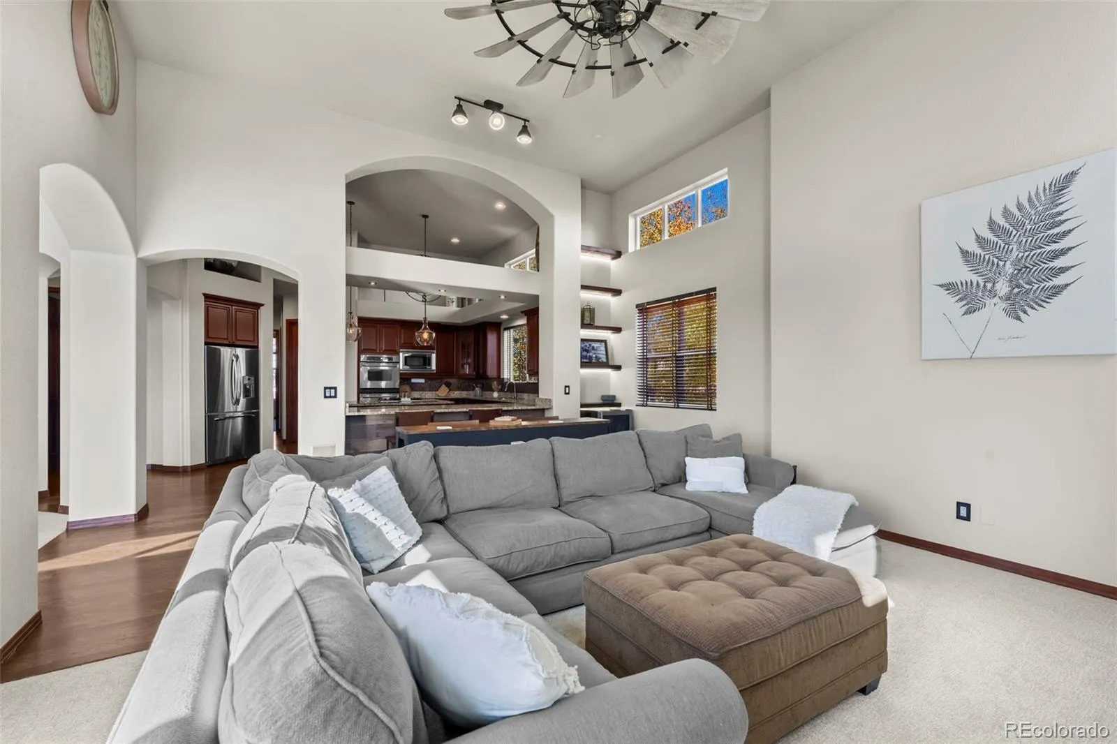 Discover nearly 7000 square feet of thoughtfully designed living spaces in this exceptional 4-bedroom, 4-full bathroom home with/ main floor primary suite and an additional bedroom w/ private en-suite, where upgrades abound. Situated in the highly sought-after Pradera, w/in the only gated neighborhood, Vistancia. Soaring vaulted ceilings welcome you into the formal living room w/ exceptional feature wall and flows perfectly into the oversized dining room, perfect for gathering and entertaining. The kitchen flows seamlessly to the breakfast bar and into a spacious family room with tons of natural light! Access the low-maintenance Trex deck from those rooms or the lovely primary suite to a mind-blowing open space. Plenty of space in the primary bedroom w/ high coffered ceiling. Behind the French doors is a designated office space ready for your touch.