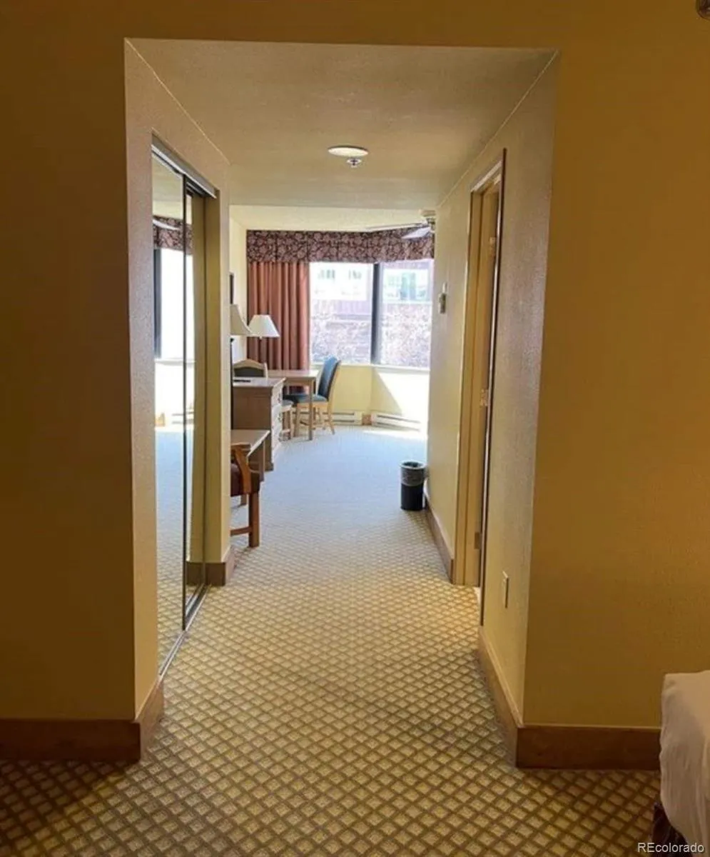Perfectly located in the heart of Mt Crested Butte in the Base Area, this condo is steps away from ski lifts, hiking, mountain biking, transit center, retail and restaurants. Resort amenities include indoor/outdoor heated pool, hot tub, fitness center, restaurant and spa. As a STR, this 2nd level at the Grand Lodge is dog friendly for not only owners, but guests also, which gives better accessibility for those with pets. Fully furnished condo with king bed and pull-out sofa bed for up to 4 guests. The kitchenette offers a mini fridge, single burner cooktop, microwave, sink, dishwasher, and coffee maker- perfect for making simple meals.