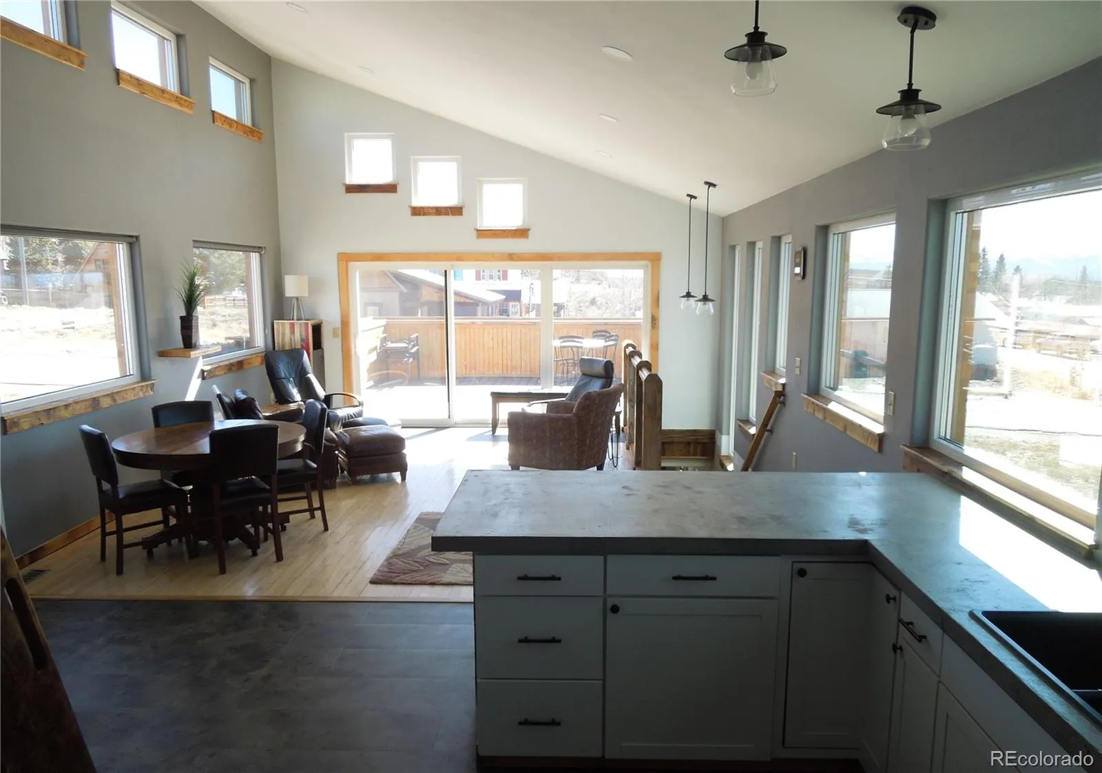 Elevate your lifestyle in this 2-bedroom, 2.5-bath, 1-garage home on Leadville’s Upper East Side. Sun-drenched interiors showcase sweeping 360° mountain vistas from the open-concept upstairs, upper level private deck, and downstairs living areas. Ideally situated just a short distance from downtown and a block from the paved Mineral Belt trail and miles of forest trails, this energy-efficient, low-maintenance residence seamlessly combines mountain charm with a modern home. The upstairs features high vaulted ceilings along with a versatile loft space that can be used as an office or quiet retreat. The passive solar heat from the triple-paned windows and the on-demand water heater significantly reduce utility costs. The fully fenced backyard, complete with a storage shed and additional open space in the adjoining lot, provides a private sanctuary for outdoor enjoyment. This home offers a rare blend of practicality and unparalleled mountain living!
