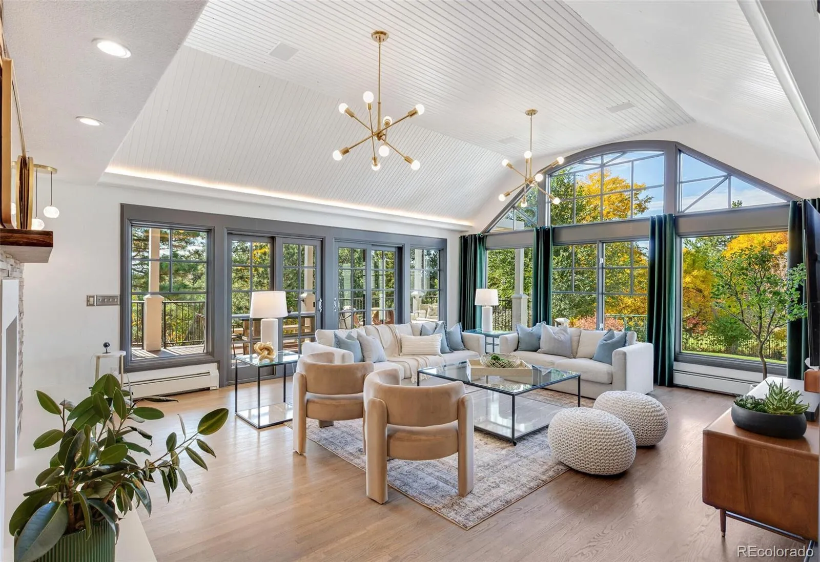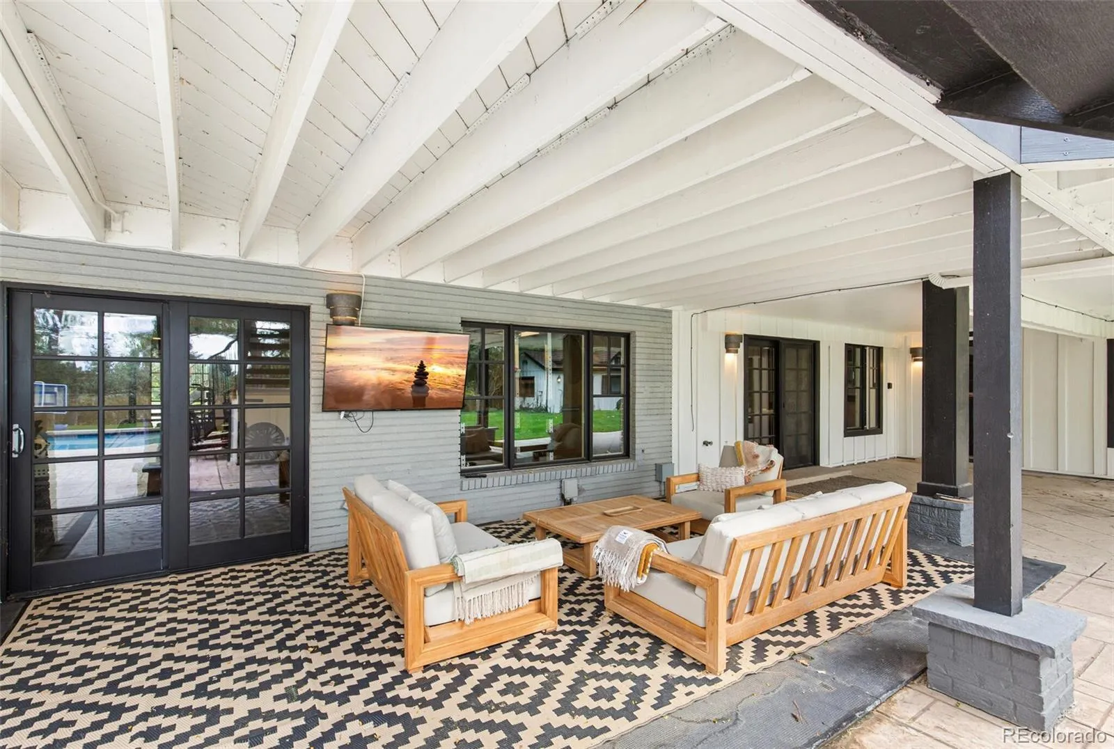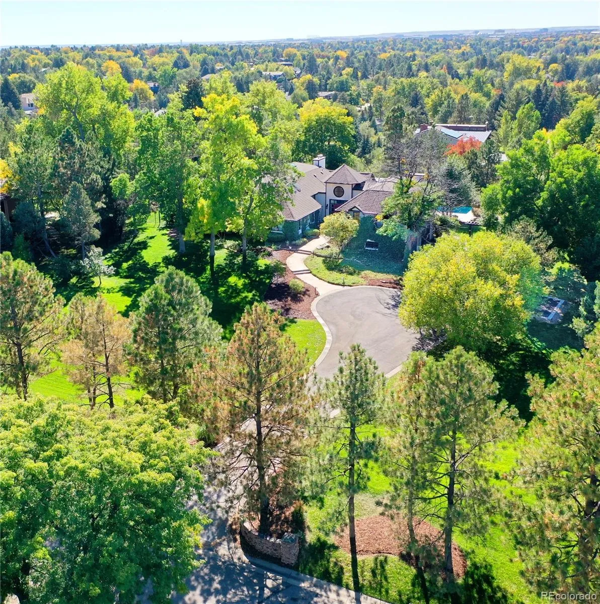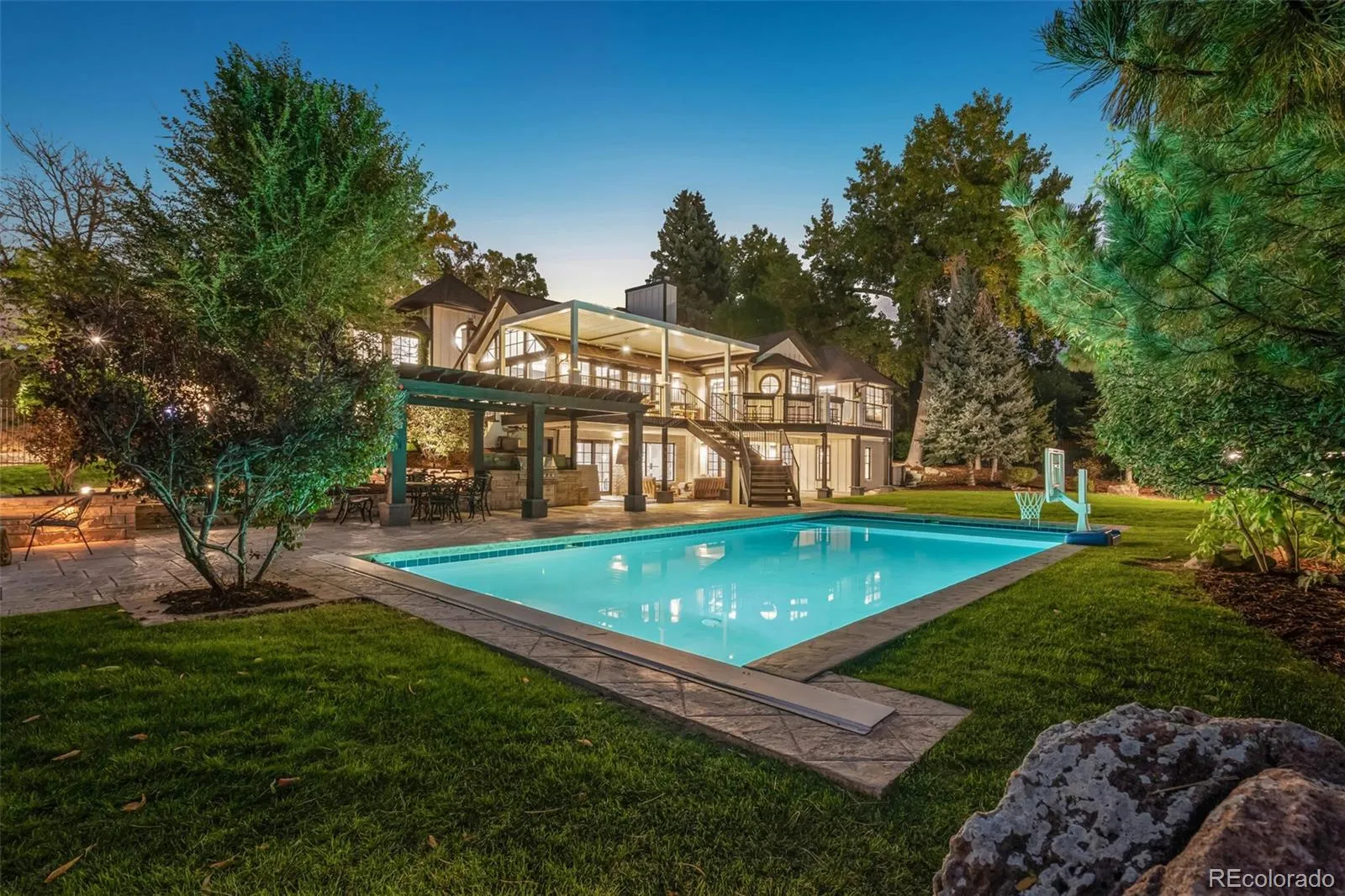 Natural light abounds throughout the home, enhanced by southern exposure & multiple skylights. The gourmet chef’s kitchen features dual oversized center islands, generous prep space, & panoramic windows that capture serene views. The open-concept family room showcases floor-to-ceiling windows, sliding doors to the deck, & tongue-and-groove pitched ceilings that highlight its architectural character. The dining room is equally inviting with a tongue-and-groove tray ceiling & indirect mood lighting for elegant entertaining.Outdoor living is truly exceptional with multiple patio spaces, pergolas, a stamped concrete patio surrounding the heated pool, and a cozy fire pit area. The heated pool includes an electronic cover and is complemented by a fully equipped outdoor kitchen—all surrounded by lush landscaping and ample sitting areas. A dog run adds convenience and versatility for pet lovers.The finished walkout lower level extends the home’s entertaining and living space, offering a wet bar, dual-sided fireplace, professional gym, theater area, and 2 additional bedrooms. Custom antique wood doors lead into a charming wine cellar. Located within the coveted Cherry Creek School District, this exceptional home is within walking distance to shopping, dining, Cherry Creek State Park, and all the desirable amenities of Greenwood Village. Timeless charm, modern updates, and an unparalleled setting make 9500 Poundstone Place one of Greenwood Village’s most distinguished luxury estates.