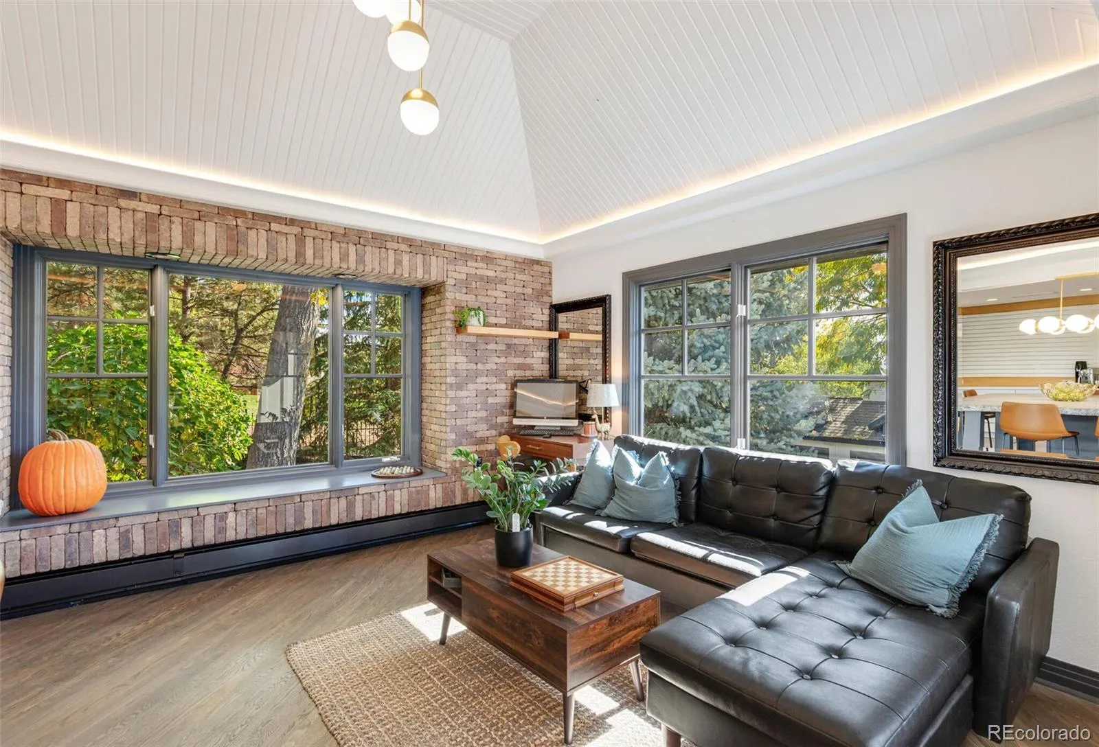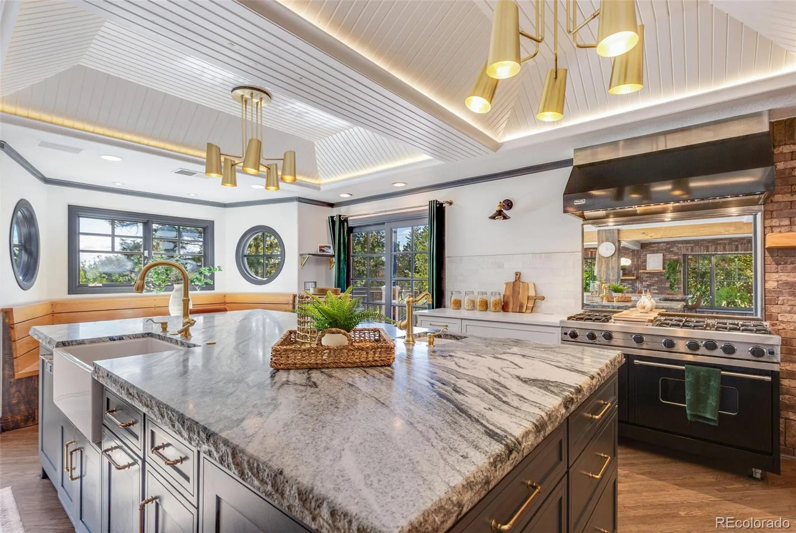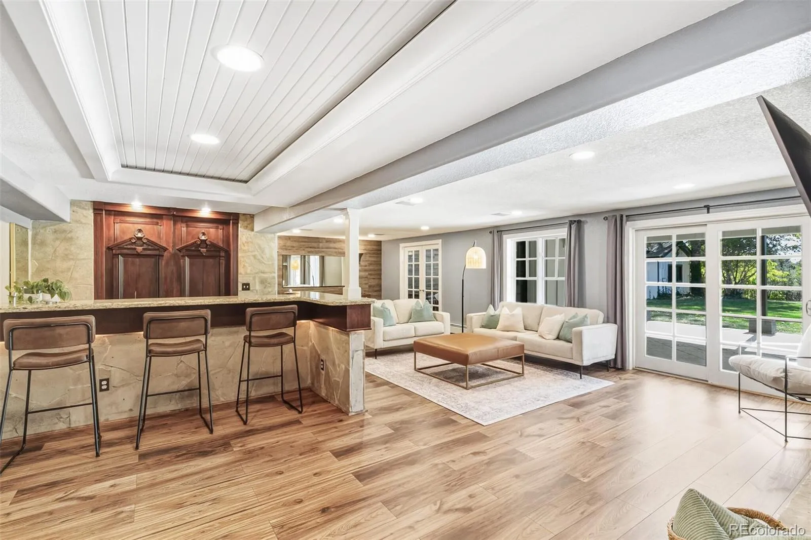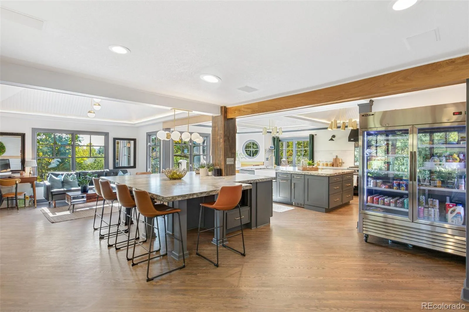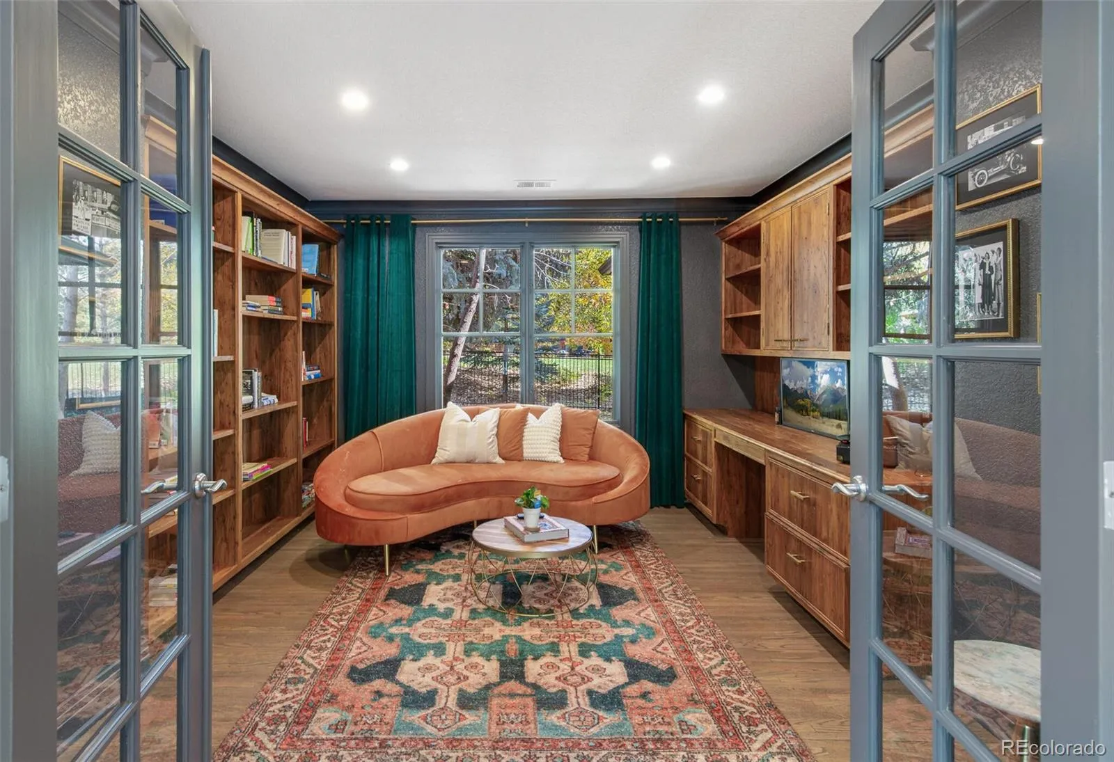 Natural light abounds throughout the home, enhanced by southern exposure & multiple skylights. The gourmet chef’s kitchen features dual oversized center islands, generous prep space, & panoramic windows that capture serene views. The open-concept family room showcases floor-to-ceiling windows, sliding doors to the deck, & tongue-and-groove pitched ceilings that highlight its architectural character. The dining room is equally inviting with a tongue-and-groove tray ceiling & indirect mood lighting for elegant entertaining.Outdoor living is truly exceptional with multiple patio spaces, pergolas, a stamped concrete patio surrounding the heated pool, and a cozy fire pit area. The heated pool includes an electronic cover and is complemented by a fully equipped outdoor kitchen—all surrounded by lush landscaping and ample sitting areas. A dog run adds convenience and versatility for pet lovers.The finished walkout lower level extends the home’s entertaining and living space, offering a wet bar, dual-sided fireplace, professional gym, theater area, and 2 additional bedrooms. Custom antique wood doors lead into a charming wine cellar. Located within the coveted Cherry Creek School District, this exceptional home is within walking distance to shopping, dining, Cherry Creek State Park, and all the desirable amenities of Greenwood Village. Timeless charm, modern updates, and an unparalleled setting make 9500 Poundstone Place one of Greenwood Village’s most distinguished luxury estates.