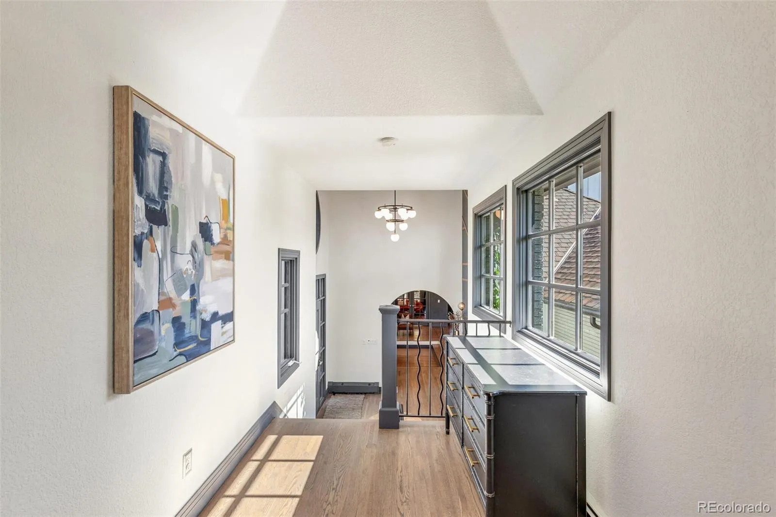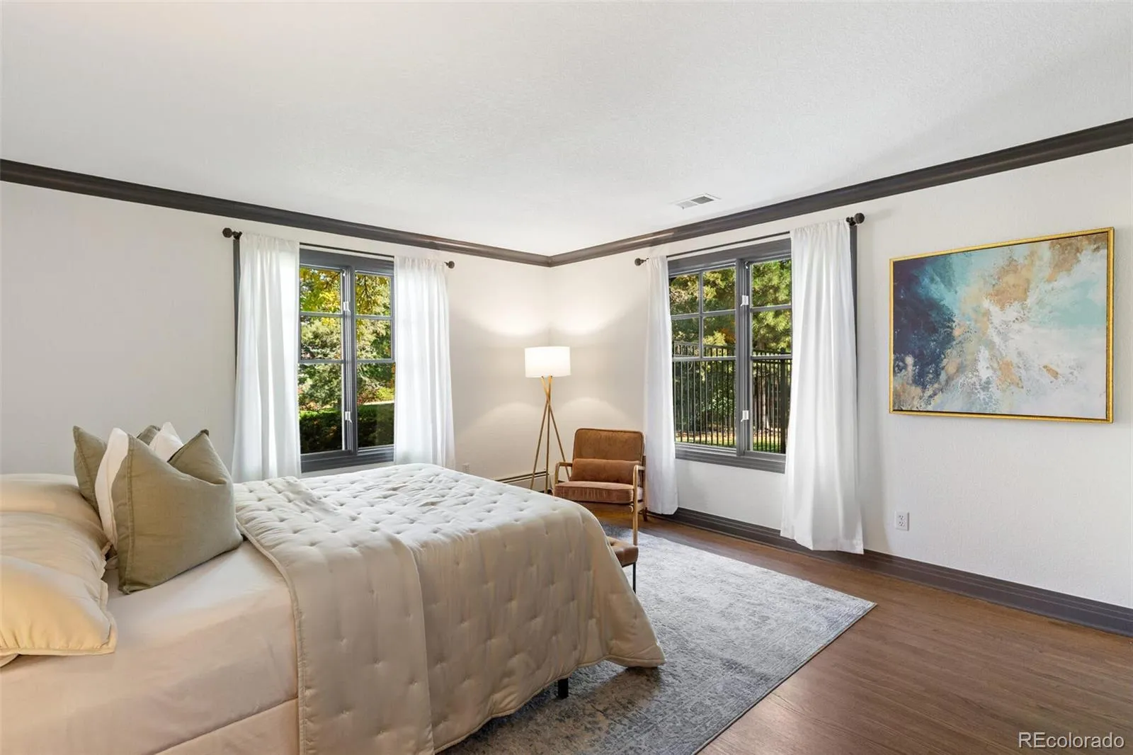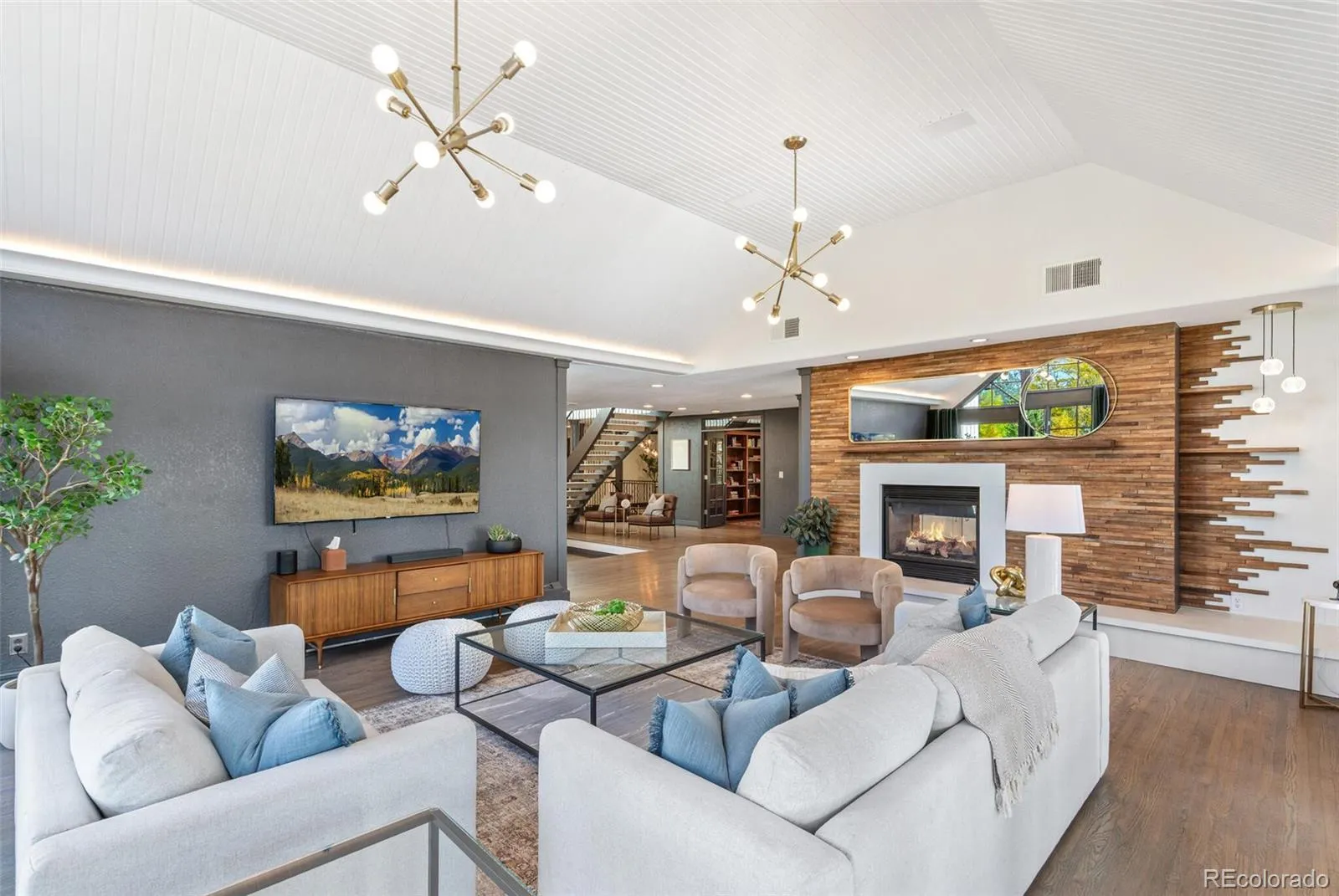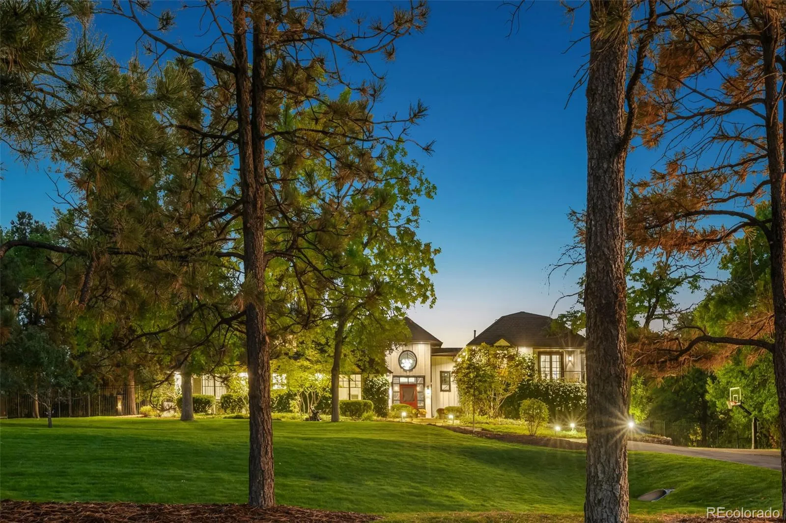 Cape Cod–inspired architecture meets modern luxury in this fully updated 7-bedroom, 6-bath estate on one of the most prestigious streets on the east side of I-25. Poised high on a 1.17-acre lot, the home has a commanding presence, framed by majestic pinion pines that gracefully flank the entry. A charming flagstone patio welcomes you inside this fully wrought-iron fenced property, which also features a 4-car sideload garage & 2 outbuildings—a private man cave & a light-filled art studio.