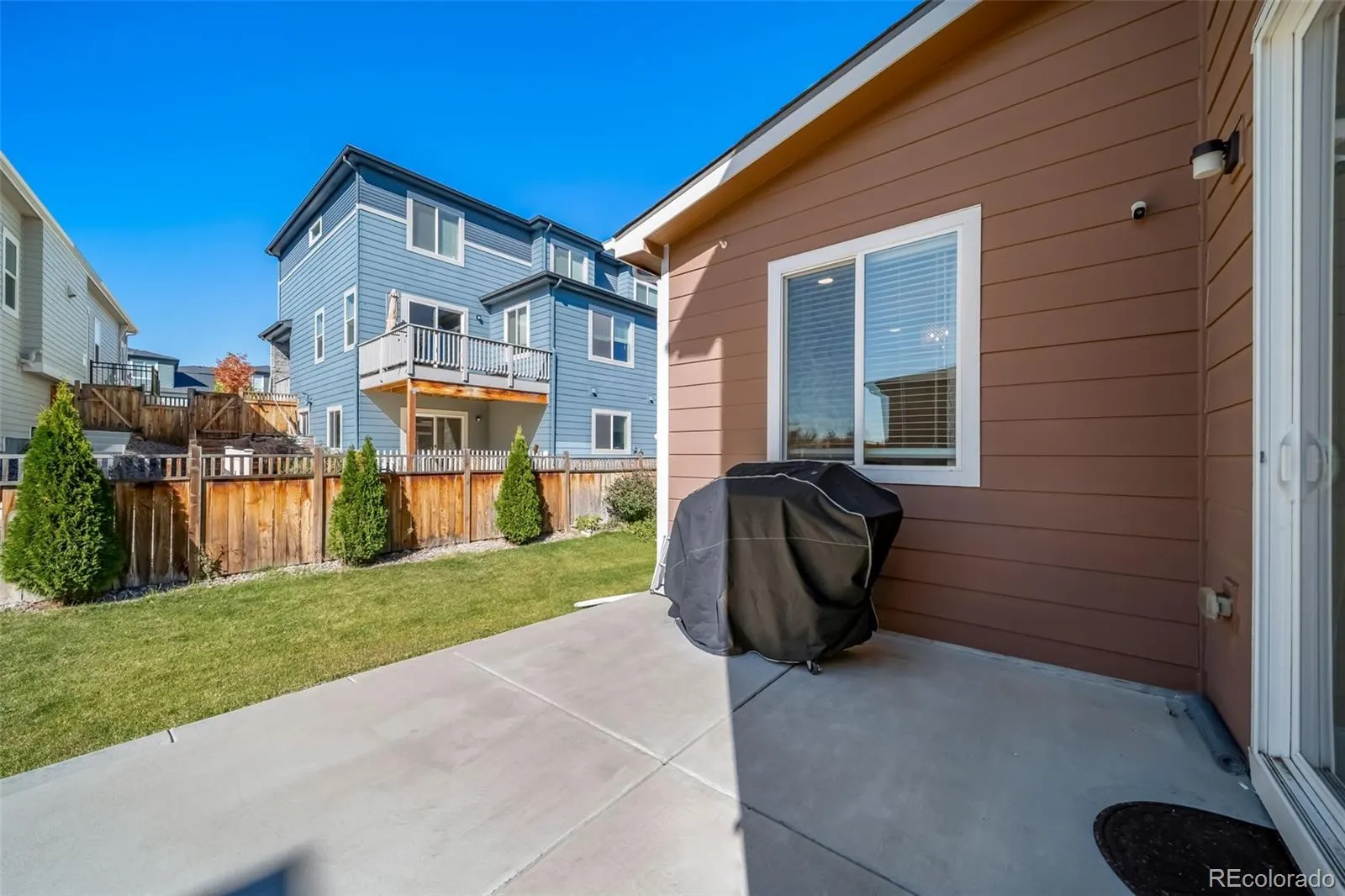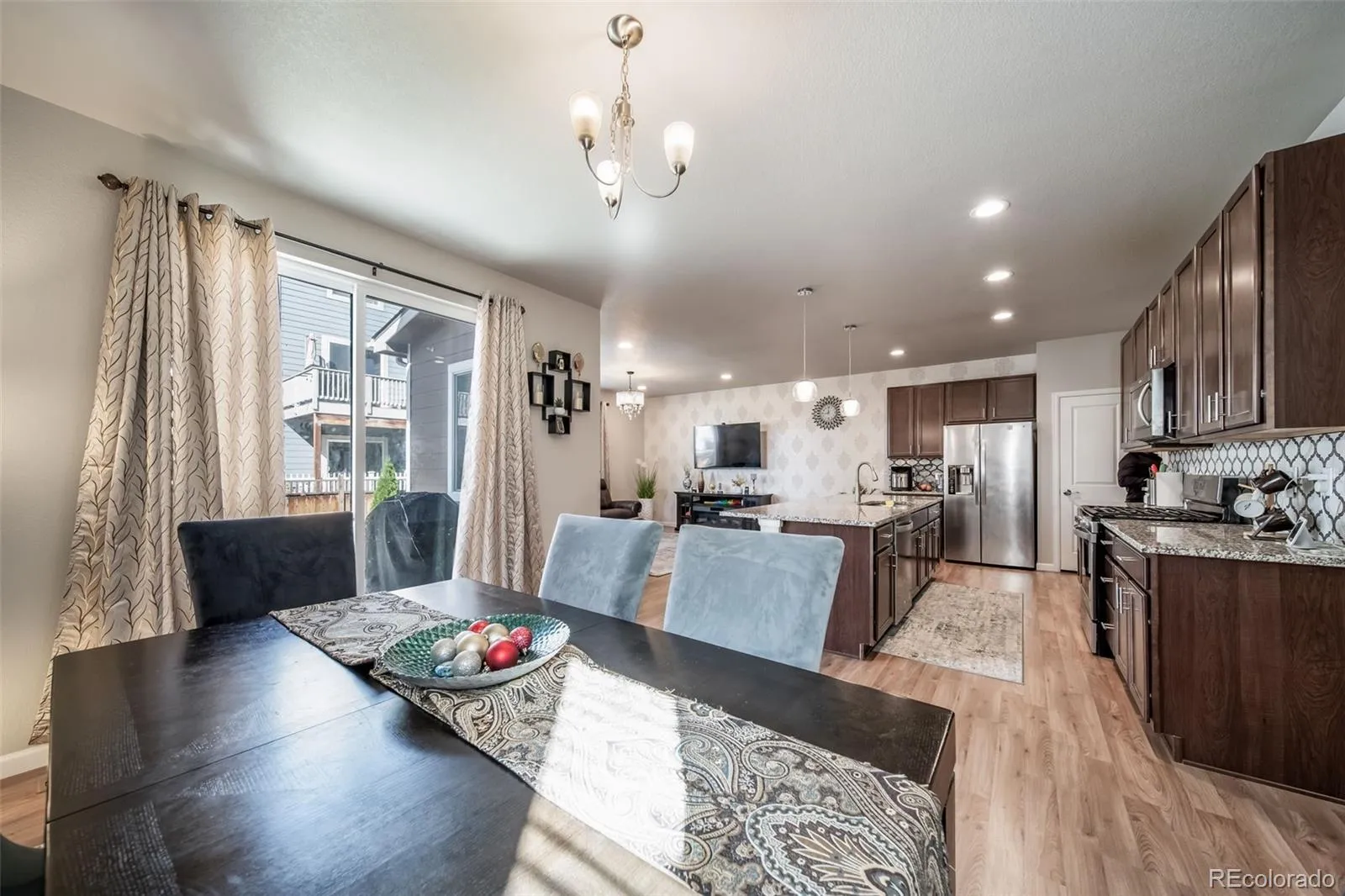The main floor boasts a bright and spacious living area that flows seamlessly into a stylish kitchen with rich cabinetry, granite countertops, stainless steel appliances, and a large island ideal for gathering. The dining area opens to the fenced backyard, creating the perfect indoor-outdoor connection for family meals or weekend barbecues.