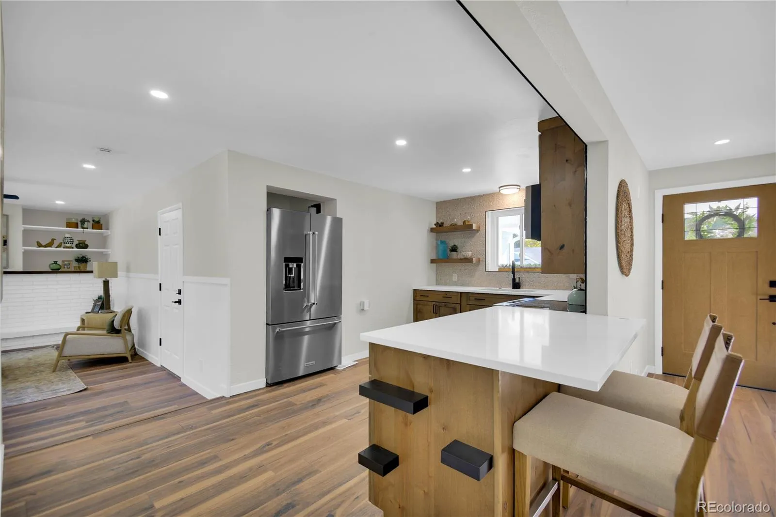 Welcome to this newly remodeled turn-key home in the heart of Broomfield, close to so many amenities and transportation hubs. The bones of this home have been completely updated with new and permitted electrical, plumbing, central air conditioning, furnace, water heater, concrete, energy efficient windows, and roof (2024). Pulling in to the new concrete driveway, you are greeted by new exterior paint and professional landscaping, including a sprinkling system controlled with an app on your phone. The new concrete and landscaping extends with a pathway to the front porch and a pathway leading to the backyard with mature trees, including a very productive apple tree! Inside, you will find new energy efficient windows highlighted by the large picture window in the living room allowing abundant natural light into the property. The main floor primary suite features a sitting area, large walk-in closet and bathroom with a walk-in shower with bench. The smaller bedroom makes for an ideal office or nursery with a full bathroom with double vanity across the hallway. The kitchen has been opened up for a natural flow between the living and family rooms and features all new custom cabinetry and backsplash, stainless steel appliances, and quartz counters with breakfast bar. The family room’s highlight is the brick, wood-burning fireplace, with an easily accessible gas tap to convert to gas burning if desired. There is also access to the newly poured concrete patio and to the finished basement with two large permitted bedrooms with new egress windows, new carpeting, a new 3/4 bathroom, laundry room (washer and dryer included), and ample storage. The largest bedroom has the option to separate a space as a bonus/game room. Schedule a showing today!