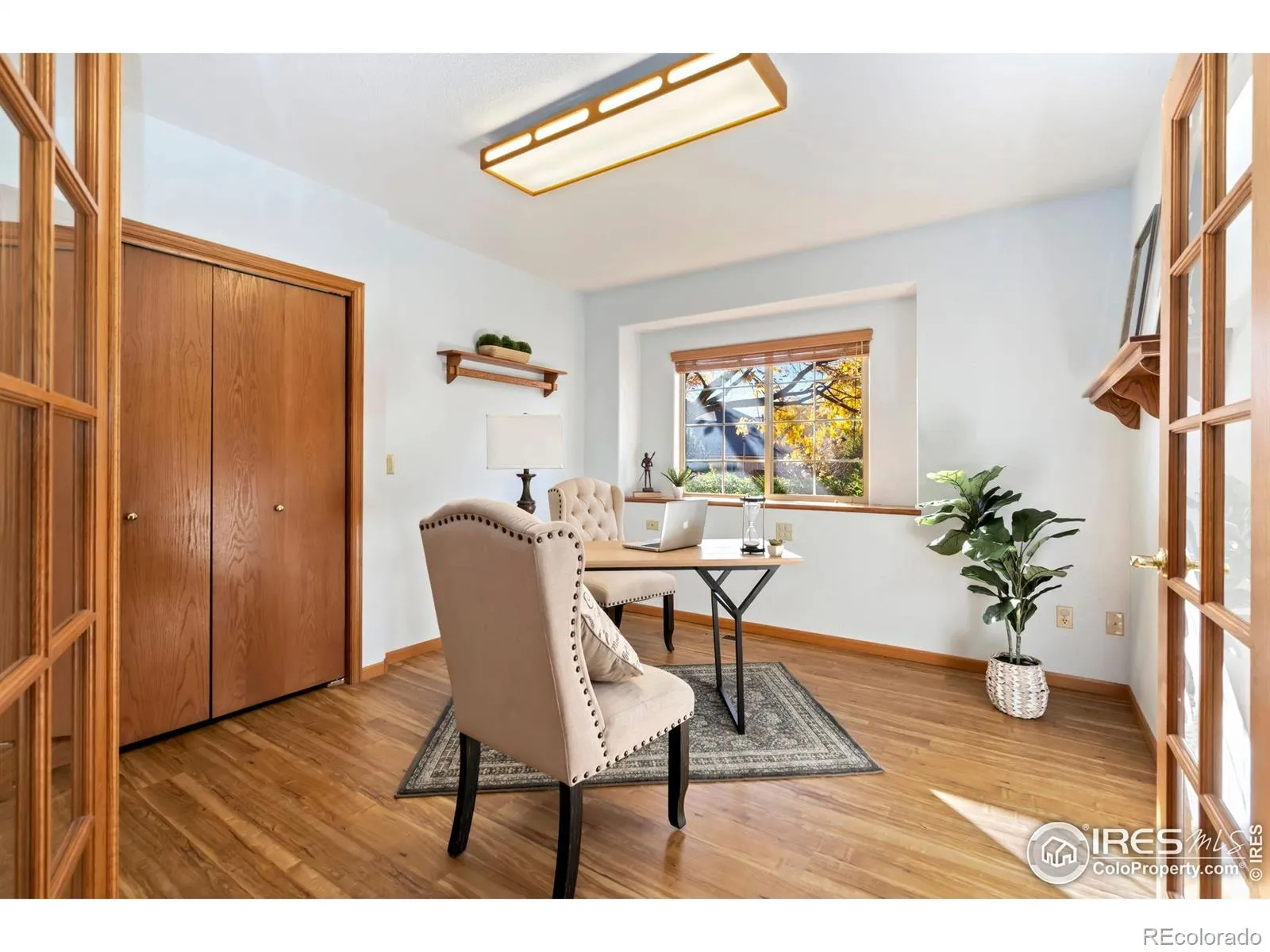 Across from beautiful Mehaffey Park, this spacious all-brick ranch home offers Colorado living at its best—mountain views, easy one-level layout, and a prime west Loveland location near trails, pickleball, and the foothills. No metro taxes, low maintenance, and over 2,500 sq ft of comfortable living space make this home a rare find! Enjoy a tandem 3-car garage for workshop/storage, new HVAC (2022), new roof (2023), and updated kitchen appliances. Open floor plan with 3 bedrooms plus an office, large living and family rooms, coffee/wine bar, and a spacious dining area perfect for gatherings. Retreat to the primary suite featuring an impressive walk-in closet and spa-style bath with a deep soaking walk-in tub – perfect for relaxation or post-workout recovery. Generous storage is found throughout the home-including built-ins, closets, and garage shelving. Fenced yard with beautiful views of the park and foothills–ideal for morning coffee or sunset relaxation. Enjoy direct access to walking and biking trails, tennis and pickleball courts, soccer fields, playgrounds, a skate park, dog park, and more. Located in the desirable City of Loveland, you’re just 25 minutes to Fort Collins or Longmont, and an easy 45-minute scenic drive to Estes Park. Loveland offers a vibrant arts scene, excellent restaurants, and all the perks of small-town living and none of the metro district taxes.This is the perfect fit for those who love active lifestyles, low-maintenance living, and quality construction in one of Loveland’s most sought-after neighborhoods. See Special Features List in Documents!