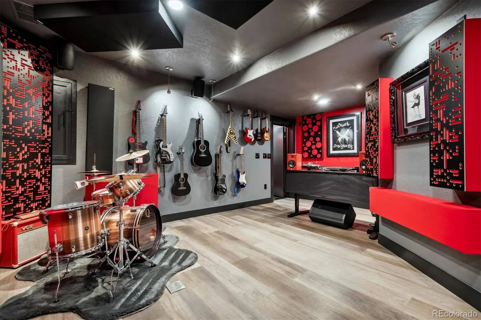 Discover an extraordinary opportunity in highly sought after Fox Hill, listed at an unprecedented price of just $333 per square foot! Step into luxury with this showcase home boasting over $200,000 in high-end upgrades post purchase. This coveted ranch with a walkout floorplan is on over 2.1 acres at the end of a private cul-de-sac. The entry greets you with an outdoor covered patio thru multi slider glass doors, outdoor fireplace, & full A/V area. The chef’s kitchen houses an oversized Granite Island and Viking appliances. The dining area stuns with views of Pikes Peak and the Rockies that captivate as you proceed to the Trex oversized deck. Marvel in the living room with soaring ceilings, exposed beams and custom finishes. Proceed to the primary suite & bath w/ dual vanities, dual closets, soaking tub and oversized double shower. This level also houses another bedroom & full bath. The walkout lower level has an open layout w/ full theater, dual sided bar w/ fridge & play area. This level also includes 3 more bedroom spaces or 2 full bedrooms and a gym. The walkout yard is fully landscaped, with a separate fenced parcel, concrete covered walkout space wired for a spa, 22 Ponderosa pines & full irrigation w/ drip. With a 4 car garage w/ epoxy floors. Upgrades: Professional URC smart whole home A/V w/ commercial Ethernet, 1G Fiberoptic tech, Denon amps w/ THX 7.1 lower zone & 5.1 upper zone, controlled w/ mobile app and/or handheld remotes. ADT system w/ cameras & DVR. Added finished, fully permitted square footage w State of the art recording music studio – Pro design by GIK Acoustics & HD acoustics for soundproof & sound treatment, w/ dedicated electric subpanel. Commercial soundproof door for entry & reinforced door for access to storage area w/ AV equipment rack. Water softener & filtration reverse osmosis system w/ added oversized water heater & recirculation. 2 whole home humidifiers. Premium finished wood below Trex decks w full Trex drain system to gutters.