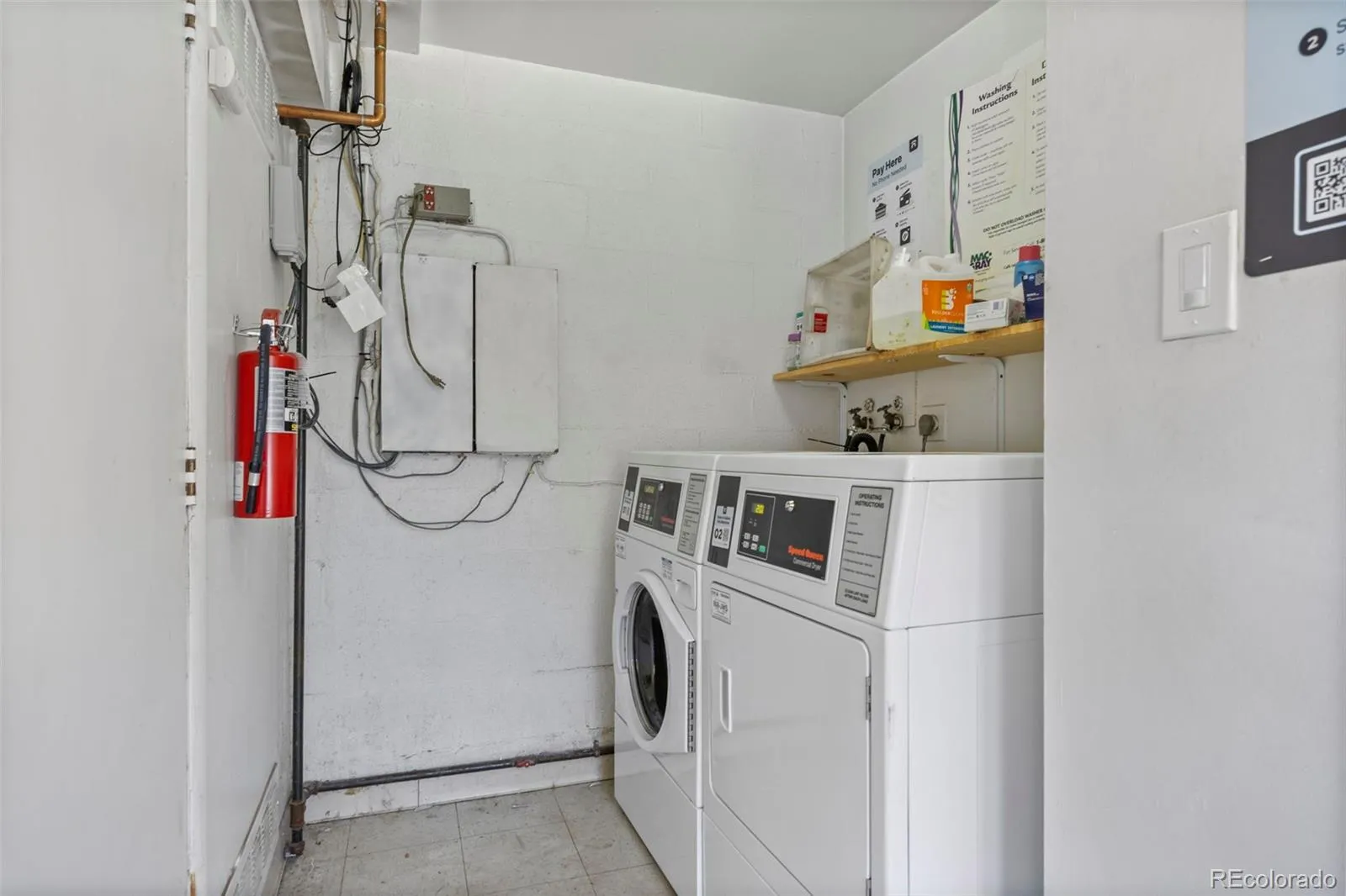 The exterior features a storage unit that fits camping gear or winter gear, with direct access to your partially covered parking spot or the unit itself. Directly under the unit is a mail and laundry room with a brand new washer and dryer that uses an app instead of coins.
