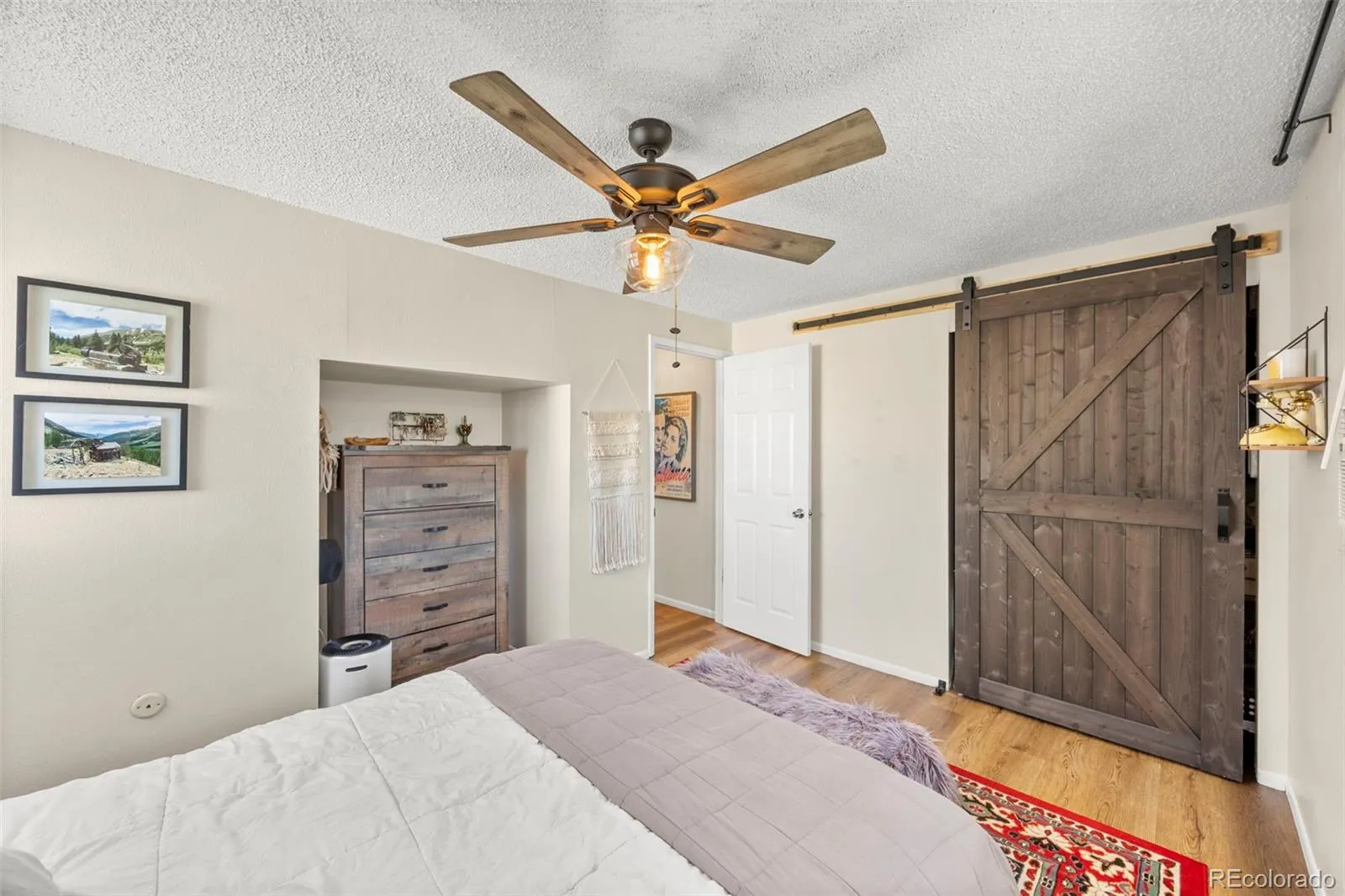 Upstairs, you’ll find two bright bedrooms with updated ceiling fans and modern barn-style closet doors. The second bedroom is perfect for a home office or guest room. The second bathroom upstairs has updated tiles, newer faucet, newer shower door, updated mirror and lighting.