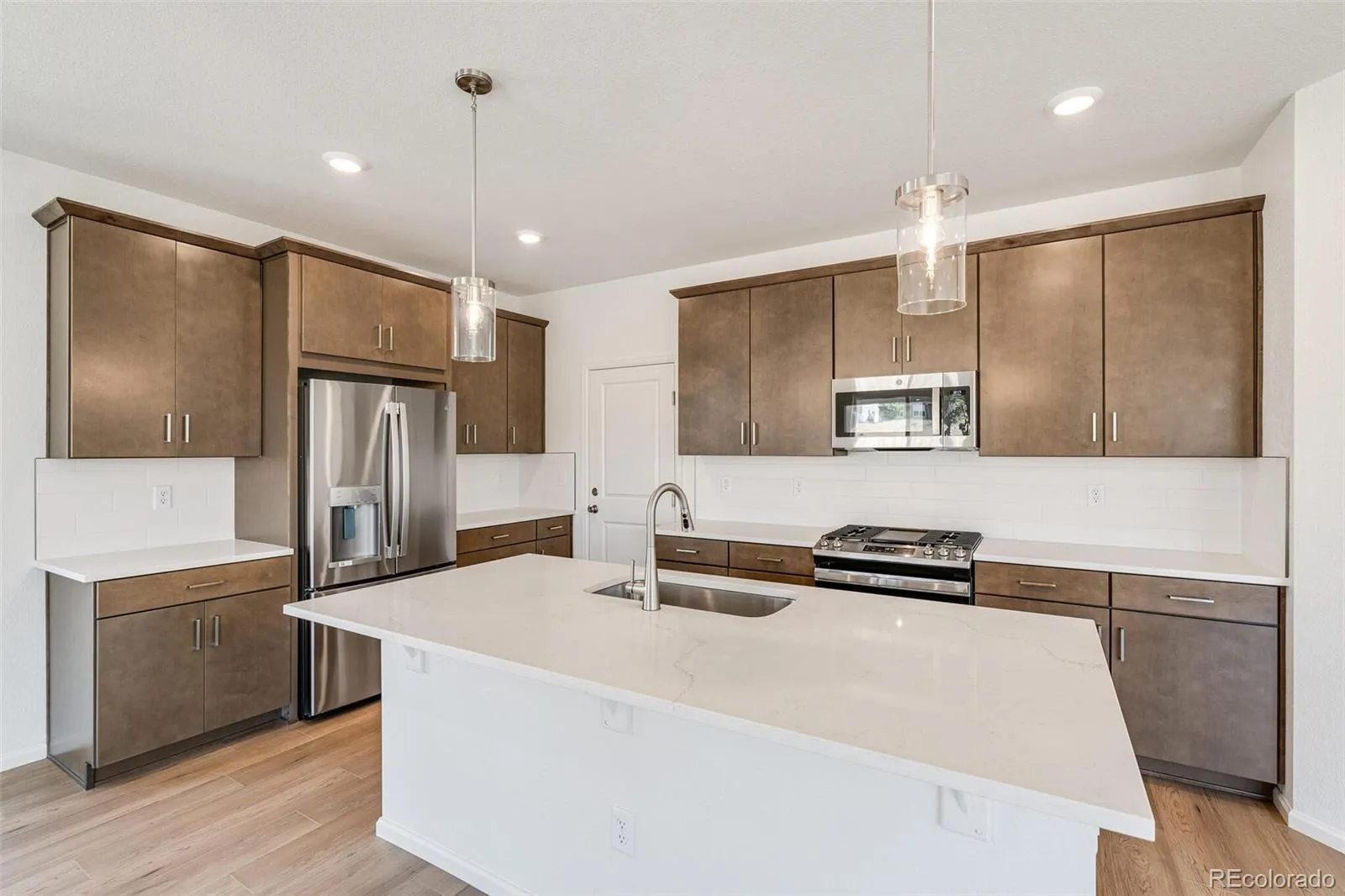 This beautiful two story home has everything you will love about Terrain Oak Valley in Castle Rock. This two story full unfinished basement home is surrounded by nature which backs to open space. Inside, discover an open floor plan with 9ft ceilings. This spacious great room for friends and family gatherings as you are able to walk directly out to the oversized covered deck which is an extension of living space. The stylish kitchen boasts of a large island, 42-in. Timberlake Full Overlay Slab Panel Latte-stained upper cabinet Calcatta Lavasa quartz countertops and stainless-steel GE appliances, including a gas range. From the kitchen this amazing open floor plan extends right into the great room which has a beautiful log set fireplace with mantel with black walnut stain. On the second floor the primary suite showcases two large walk-in closets, and a connecting spacious primary bathroom with a large linen closet, oversized dual sink, and a sit-down shower. Front primary bathroom with a large linen closet, oversized dual sink, and a sit-down shower. Front landscaping is included. Welcome home as it is both nature and city, work and play, adventure and leisure are right out your door. You can enjoy walking and hiking trails that wind through the entire community. If you just want to sit and relax, within walking distance is the Swim Club/pool. The Swim Club (Clubhouse ) is a warm gathering space, big screen TV, and fireplace. Terrain also offers the Dog Bone Park where you can unleash your 4-legged family members and let them run free. Also enjoy Wrangler Park with tennis courts, a picnic pavilion, playgrounds, and playfields. Centrally located on the plateau is Ravenwood Park with spectacular views, playground, and a long in-ground slide. The Listing Team represents builder/seller as a Transaction Broker.