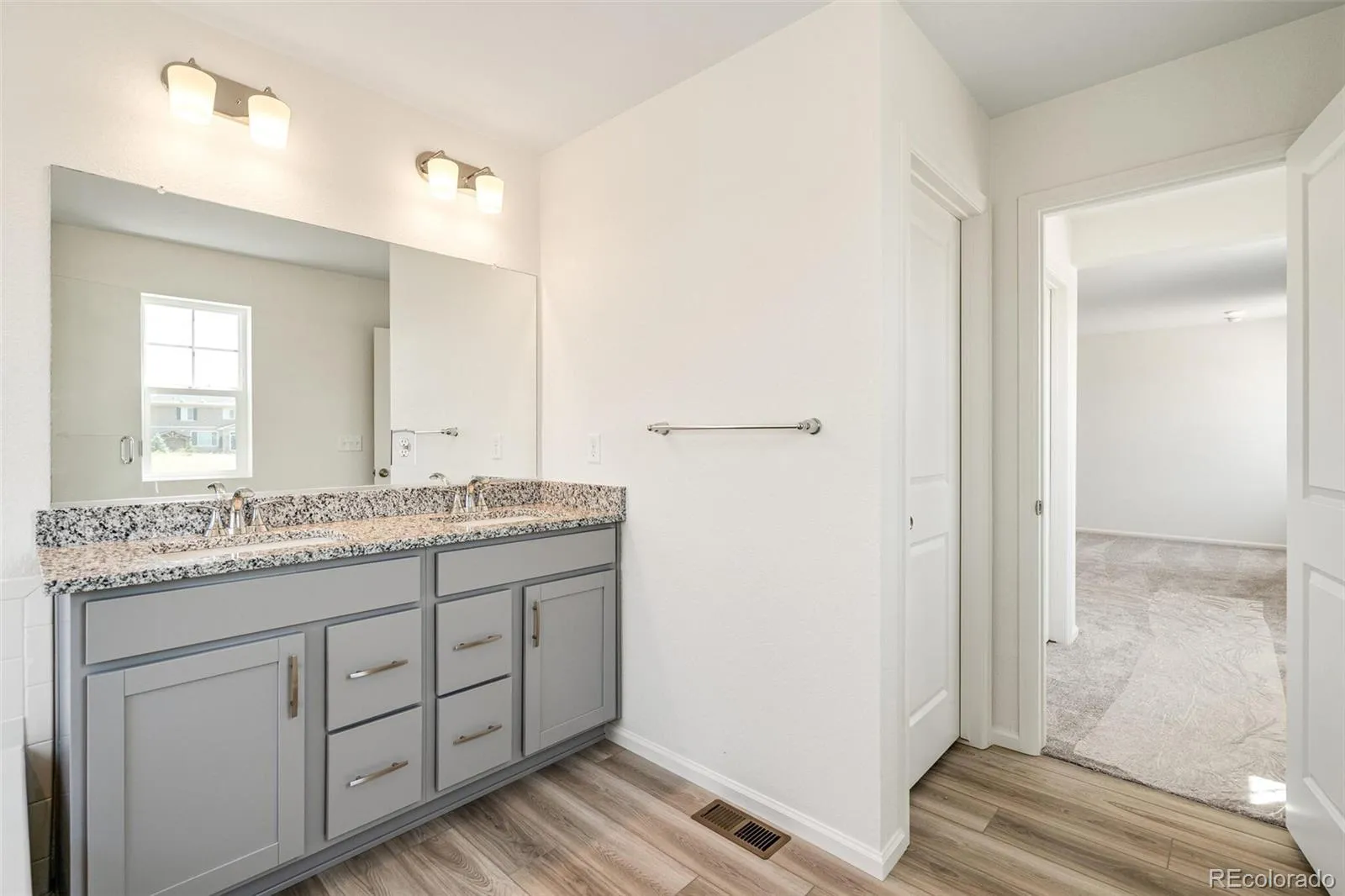 two walk-in closets, and a connecting spacious primary bathroom with a large linen closets, oversized dual sink counter,