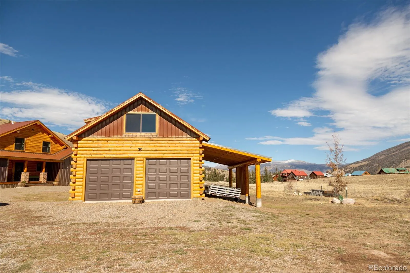 The open-concept living area features a cathedral ceiling with large skip-peeled log beams, new windows that frame the stunning views, and a cozy new corner fireplace. The main-floor primary suite offers a spa-like retreat with a new bathroom showcasing both a jacuzzi tub and a shower—each with views of the La Garita Mountains. Two additional bedrooms upstairs with a shared bath gives plenty of room for family and friends.