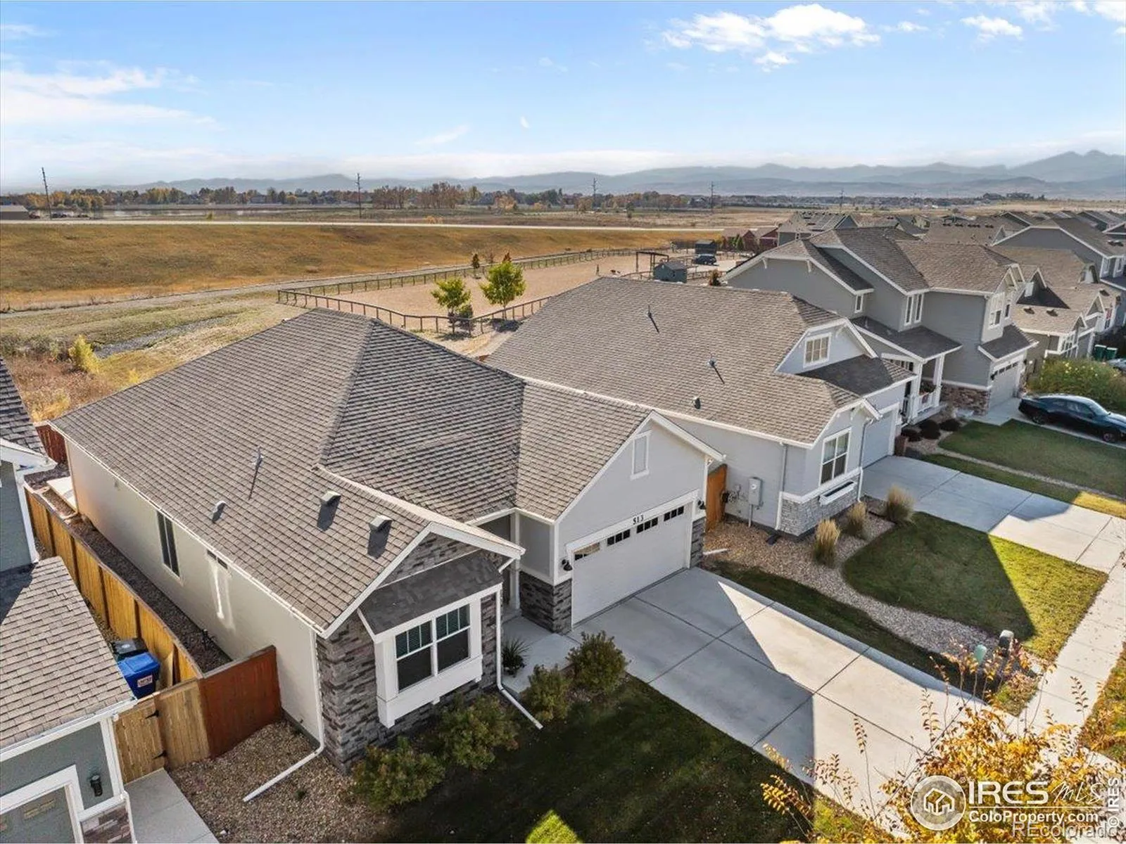 Welcome to 513 Grand Market Avenue, a beautifully appointed ranch-style home in the heart of Berthoud’s desirable PrairieStar community. This modern and inviting residence combines stylish design with everyday functionality, offering open and bright living spaces perfect for entertaining or relaxing-all on one convenient level. The open-concept layout showcases a spacious living room anchored by a cozy fireplace, a dining area filled with natural light, and a contemporary kitchen featuring sleek cabinetry, stainless steel appliances, a large island, and pantry for extra storage. The primary suite offers a walk-in closet and a private ensuite bath with dual sinks and a glass-enclosed shower. Two additional bedrooms provide versatile space for guests, a home office, or hobbies, complemented by a full bath and a convenient laundry room nearby. Step outside to the fenced backyard with a patio boasting stunning mountain views, perfect for outdoor gatherings or quiet evenings under the Colorado sky. This great outdoor space backs directly to the neighborhood walking trail, ideal for morning strolls or evening jogs, with a community dog park just nearby for your furry friends. Located close to parks, additional trails, and community amenities, and just a short 10-minute drive to vibrant downtown Loveland, this home offers the perfect blend of small-town living and modern comfort. Experience a fresh, easygoing lifestyle at 513 Grand Market Avenue-where contemporary design meets Colorado charm.