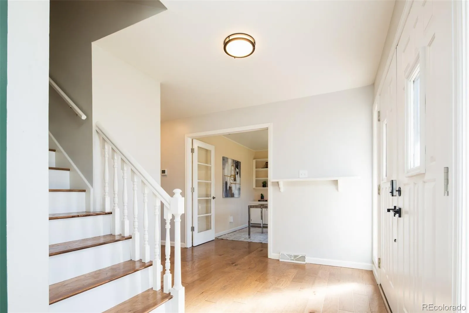 Welcome to this beautifully updated two-story brick home, perfectly situated on a quiet cul-de-sac in the highly sought-after Columbine Knolls community. This residence offers the perfect blend of timeless character, modern updates, and a warm, inviting feel—set among wide tree-lined streets and surrounded by friendly neighbors. Step inside to discover an elegant and functional layout with newer wood flooring on the main level and abundant natural light streaming through the home’s expansive windows. The updated kitchen features solid-surface countertops, newer cabinetry, built-in microwave, and pantry—seamlessly connecting to a bright family room centered around a stunning gas fireplace. A formal dining room, adjoining living area, and a private study with french doors and custom built-ins complete the main level, offering versatile spaces for both everyday living and entertaining. Upstairs, you’ll find four spacious bedrooms and two full baths, including a generous primary suite with ample closet space and a serene en-suite bathroom. The finished basement extends the home’s living space, featuring a large recreation area, full kitchen, full bath, and an additional bedroom with a walk-in closet—perfect for guests, extended family, or a playroom. Step outside to enjoy a large, private backyard with mature landscaping, fenced garden area, and covered patio—ideal for summer gatherings or quiet relaxation. Located near parks, playgrounds, schools, and shopping, this home captures the best of suburban comfort and community spirit. Spacious, sun-filled, and perfectly maintained—this Columbine Knolls gem is ready to welcome you home!