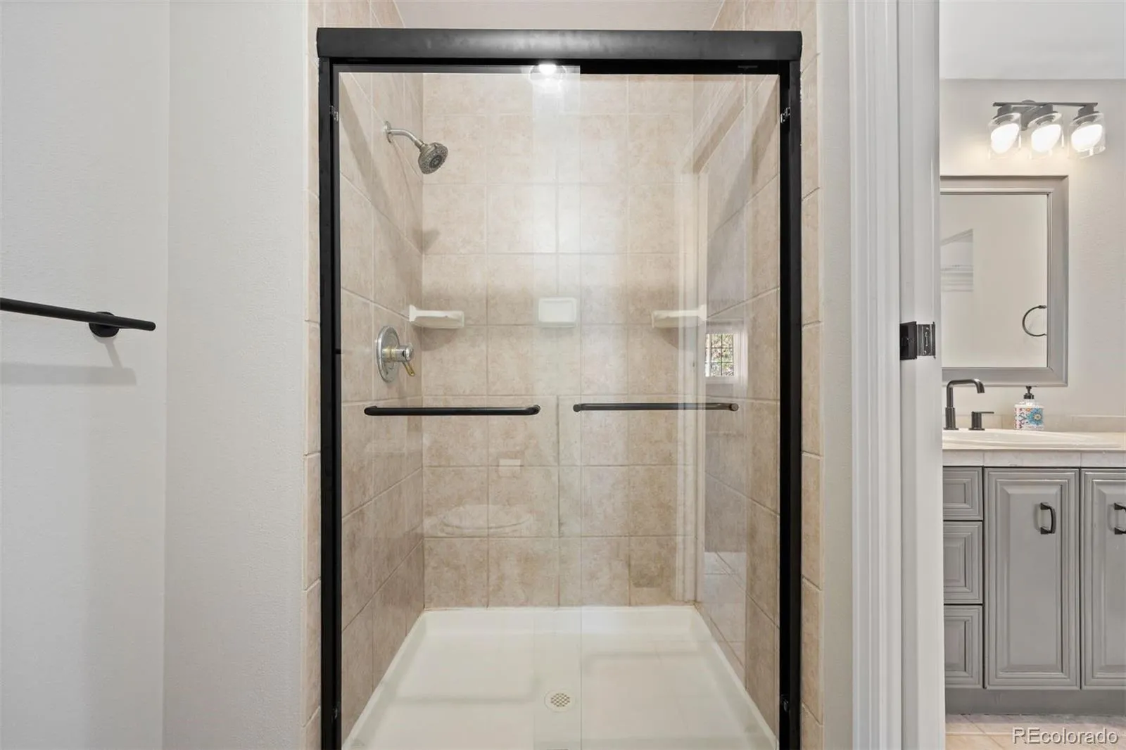 This inviting and move-in-ready home, situated at the end of a cul-de-sac, is neighborhood living at its finest! Brand new interior and exterior paint and new carpet throughout this home, as well as new appliances and bathroom fixtures, create a fresh feeling and a clean slate to make it your own. A walking path and green belt run next to the property, making a quick walk to the Ken Caryl Ranch house and the Schaffer Elementary School. Relax in the private, tree-filled backyard, featuring a covered patio, hot tub and a custom-made tree house. The interior has a functional layout including 5 bedrooms, multiple living/dining areas, and a bright kitchen overlooking the backyard. The full finished basement is full of possibilities for living or recreation, and includes a beautifully-finished laundry/utility room that could be used for many purposes. Bathrooms have been upgraded with new hardware, shower doors and mirrors, New fans and light fixtures have been installed throughout the home. Additional upgrades the current owners have made include a new roof with a lifetime warranty, main sewer line replacement in 2021, ENERGY STAR® certified Water heater replaced in 2020, Radon mitigation system installed, solar panels (fully owned), backyard fencing replacement. The home has some settling due to the expansive soil known to be prevalent in the Ken Caryl area. The current owner added improved drainage to the backyard to address the issue.