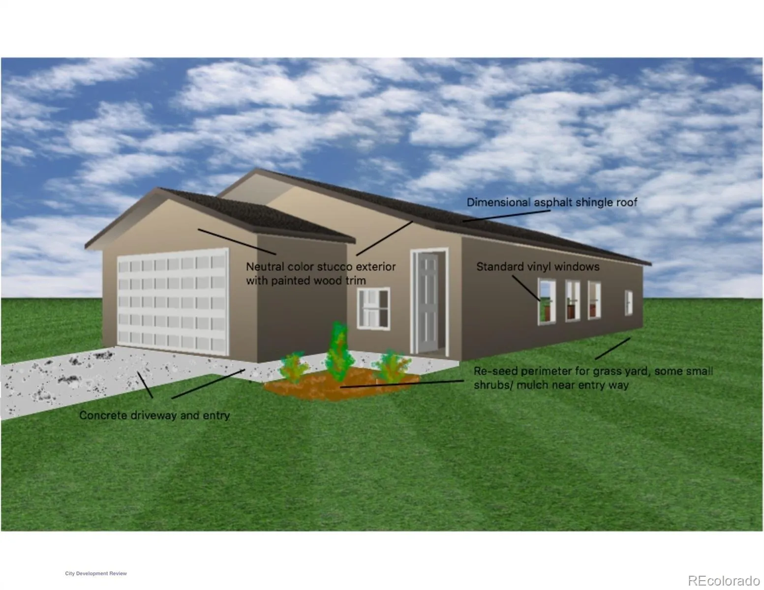 Under Construction & Ready to Impress! Experience the perfect blend of comfort, style, and modern living in this beautiful stucco home nearing completion. Step inside to an inviting open concept great room that seamlessly connects the living, dining, and kitchen spaces. Durable luxury vinyl plank flooring sets a warm tone throughout. The kitchen shines with soft close wood cabinetry, granite or quartz countertops, stainless steel appliances, and a spacious island offering extra storage and prep space. The primary with en suite provides a peaceful retreat, while two additional bedrooms and a full bath offer comfort and flexibility for family or guests. A dedicated laundry room adds convenience to daily living. Thoughtfully designed inside and out, this home features mountain views, quality finishes, and room to embrace the Colorado lifestyle.