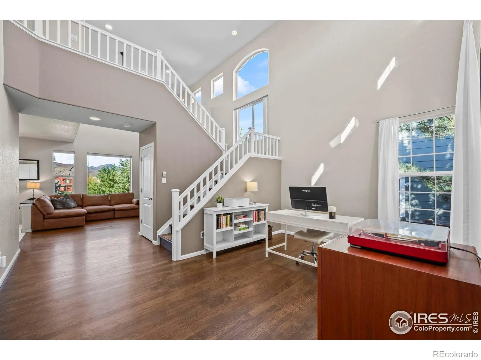 Enjoy breathtaking, unobstructed MOUNTAIN VIEWS from this beautifully updated home in Roxborough Village. Soaring vaulted ceilings, tall windows, and an open floor plan fill the home with natural light and frame the incredible backdrop of Colorado’s Front Range. The main-level living room features a gas fireplace, custom built-ins, and expansive windows showcasing the mountain views, seamlessly connecting to the updated kitchen with newer stainless steel appliances, a kitchen island, and ample counter and storage space, including a large pantry. From the kitchen, step out to the spacious west-facing deck to take in the sunset over the mountains and enjoy true indoor/outdoor living. The front room-currently used as an office-offers flexible space and would make an ideal formal dining room. The main level also includes a powder bath, a large laundry room, and an attached two-car garage. Upstairs, the primary suite captures stunning mountain views and features a en suite bath and large walk-in closet. Two additional bedrooms and a full bath complete the upper level. Ideally located near open space and scenic trails, including Crystal Lake, Roxborough State Park, and the Arrowhead Golf Course, this home offers the best of Colorado living. Shops, restaurants, and groceries are all within walking distance. Don’t miss this opportunity to own a home with unbeatable views and an incredible lifestyle!