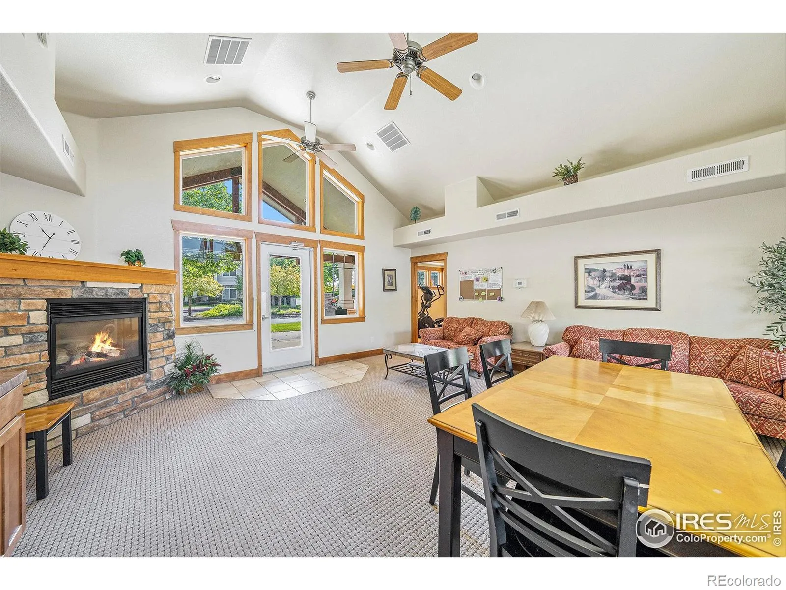 Rare Lakeview Condo! Design features include vaulted ceilings, cozy gas fireplace, huge walk-in closet & large storage closet adjacent to covered deck. The home has been beautifully taken care of & offers newer luxury laminate flooring in the living & kitchen areas. Kitchen has newer, quartz countertops, beautiful backsplash, & a brand-new high-end refrigerator. The furnace is only three years old. The views of the lake & natural areas from this unit are amazing! Lakes, nature trails, shopping, restaurants, pool, clubhouse all close to MCR & I-25. Come see this special property.