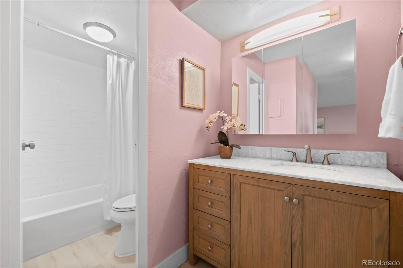 Beautifully Updated Park Mayfair Condo with Mountain Views! Welcome home to this beautifully updated 1-bedroom condo on the 5th floor of Park Mayfair, offering sweeping northwest mountain views and a bright, open layout. Floor-to-ceiling windows fill the spacious living and dining areas with natural light, while the modern kitchen features soft-close gray cabinetry, quartz countertops, and updated appliances. Luxury plank flooring runs throughout the entire home, leading to a large bedroom with plenty of space for a king-sized bed, a generous walk-in closet, and a second set of sliding glass doors to the 23-foot covered balcony — the perfect place to relax and take in the sunset. The updated bathroom includes a marble-topped vanity with soft-close drawers and a classic subway-tiled shower/tub combination. Park Mayfair’s amenities truly set it apart: enjoy an indoor pool, fitness center, and dry sauna right inside your building — ideal for cozy winter days. When the weather warms, head outside to the beautifully refreshed courtyard with an outdoor pool, built-in grill, and lounge areas. This unit also includes a deeded garage parking space (#11), a separate storage unit, and convenient access to the on-floor laundry room. The building is currently receiving a stylish exterior refresh, fully funded by the current owners — so you’ll enjoy the benefits for years to come. All this, just steps from Rose Medical Center and moments from the fantastic shops, restaurants, and entertainment at 9th & Colorado, including Trader Joe’s, AMC, Postino, and Culinary Dropout.