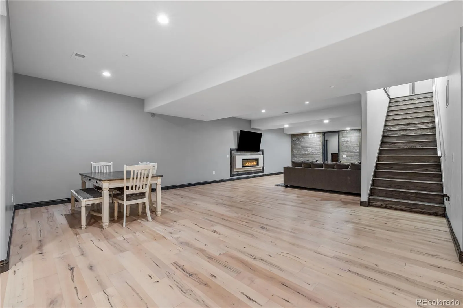 The fully finished basement offers a sprawling; open space designed for entertaining or unwinding. It features a stylish wet bar, an electric fireplace, a fourth bedroom, and a fifth bedroom or optional room. The possibilities are endless, allowing for both comfort and creativity in how the space is enjoyed.