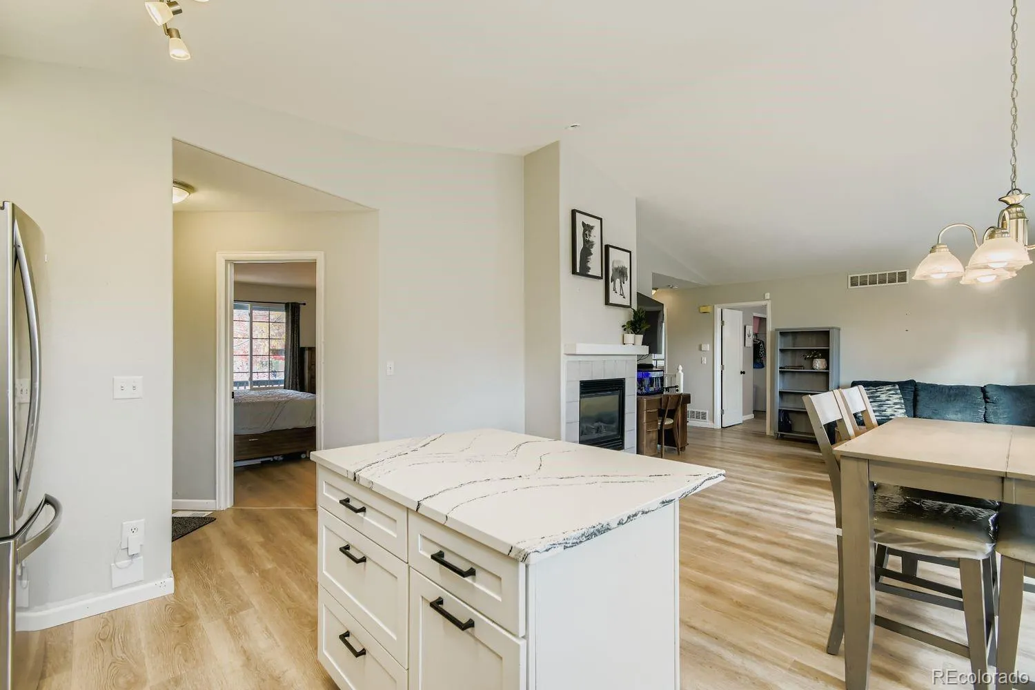 Adorable updated ranch in Canyon Creek with fully finished basement! This versatile and spacious floor plan offers 5 bedrooms & 3 full baths! The completely open concept connects the kitchen, dining and living spaces. Nicely updated with newer LVP flooring & paint throughout the main level. The open island kitchen has been beautifully updated with soft-close white shaker cabinets, quartz countertops, stainless applc’s and boasts a skylight & vaulted ceilings. The large dining area flows into the living room. Enjoy the centrally located gas F/P from anywhere on the main level. The primary suite is secluded away from the secondary bedrooms and has a nice WI closet and private full bath. The kids will love the large main level secondary bedrooms which share the beautifully updated full bath with barn doors! In the full finished basement you will find a large room that is being used as a conforming primary with a huge WI closet & access to the nicely remodeled full bath, another bedroom and a large utility room w/egress window that could easily be finished into a 6th bedroom! New roof installed 11/2024. Come take a peek!