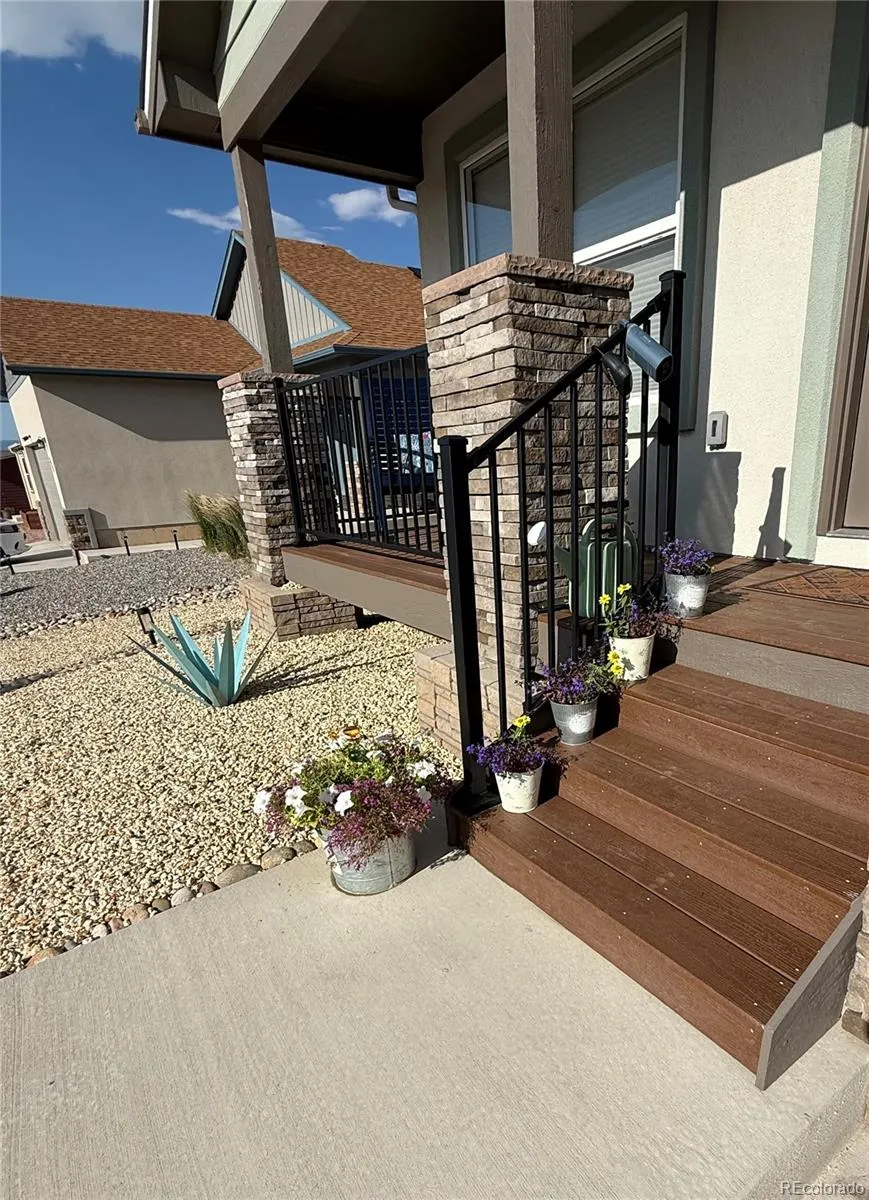 I was built in 2023 — a 3-bedroom, 2-bath home crafted to blend modern comfort with Colorado charm in all the right ways. The moment you step inside, my open layout feels fresh and inviting, filled with natural light that highlights the perfect mix of textures and tones. My kitchen is thoughtfully designed, where form meets function. Custom lighting sets the mood — from the soft glow over granite countertops to the bold statement fixture above the dining table. Stainless steel appliances, sleek cabinetry, and a cozy eat-in layout make it easy to cook, chat, and linger all in one welcoming space. My primary suite is a bright, restful retreat with a tiled walk-in shower and clean, modern finishes. Two additional bedrooms round me out beautifully — ready for guests, an office, or a peaceful hobby room. Luxury vinyl plank flooring runs through my main living areas, giving durability a stylish edge, while plush carpet in the bedrooms softens every step. Custom window blinds finish the look with understated elegance and privacy. Step outside and you’ll find my fully landscaped yard — easy to care for and ready to enjoy. The Trex deck off the front door is my favorite feature, perfect for a quiet cup of coffee in the morning or soaking in a mountain sunset at day’s end. With solar energy, central air, and refined details throughout, I’m efficient, comfortable, and ready to make someone’s next chapter feel like home. Call today to schedule a tour!