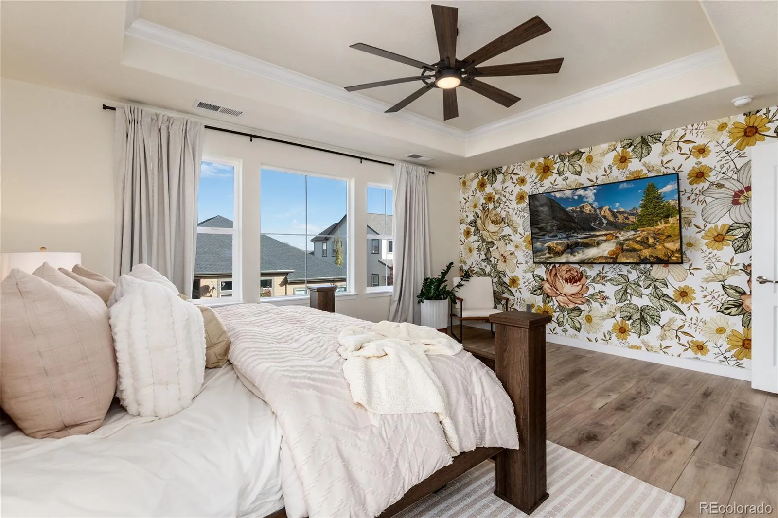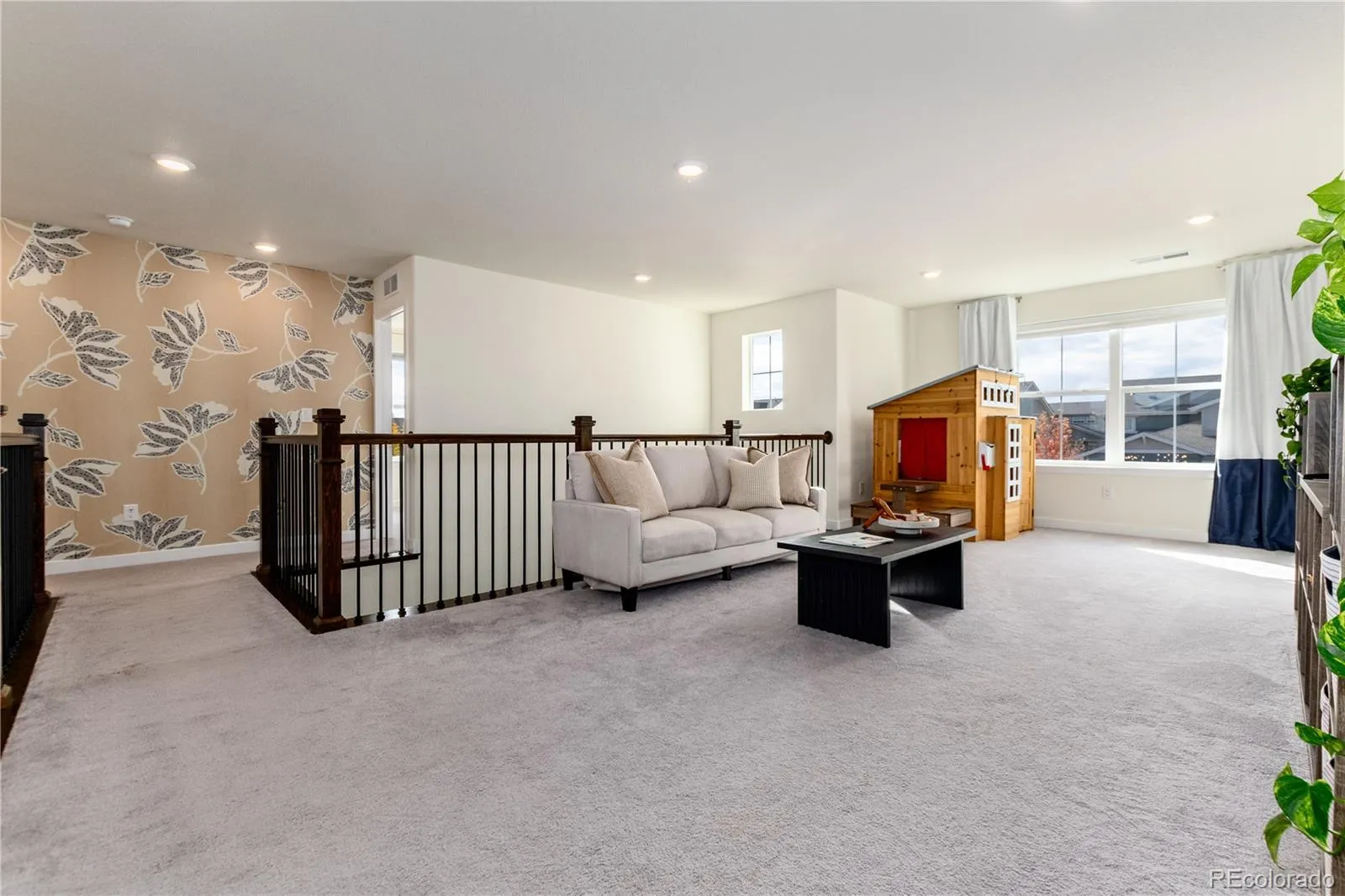 Welcome home to this spacious and thoughtfully designed 5 BDRM, 4 BATH home in the highly sought-after Compass neighborhood of Erie. Step inside to find a welcoming entry and formal dining room that lead into a chef’s kitchen, complete with an oversized island and open flow into the stunning two-story family room with a cozy gas fireplace.The main floor offers a versatile bedroom and full bath, ideal for guests or a home office. Upstairs, you’ll find a large loft with its own bathroom, plus a luxurious primary suite featuring a five-piece bath and a walk-in closet with custom built-ins that conveniently connects to the laundry room. Two additional bedrooms share a well-appointed Jack-and-Jill bath. The finished basement expands your living space with a large recreation room, wet bar, and an additional bedroom. It’s plumbed and ready for a future bathroom, perfect for growing families or entertaining guests. Enjoy Colorado living at its best from the welcoming front porch, an ideal spot to relax with coffee and watch Erie’s famous hot air balloons drift by. The backyard offers even more outdoor living with a covered deck featuring custom shades for privacy, plus an extended stamped-concrete patio perfect for gatherings. The oversized three-car garage is finished with epoxy floors, and additional updates include new flooring, two furnaces, and a radon mitigation system. Located in one of Erie’s most desirable communities—just minutes from parks, trails, top-rated schools, and charming downtown Erie—this home perfectly blends luxury, comfort, and small-town charm.