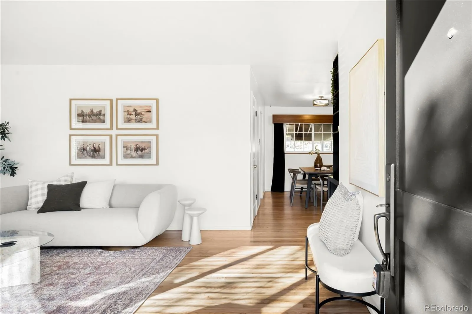 Positioned just a half block from Harvey Park, this charming Denver residence beams with timeless character, thoughtful updates and a rare sense of space. One of the few homes in the area with both a basement and an attached garage, this property provides versatility and comfort throughout. The bright living room welcomes sunlight through a wide picture window, flowing easily into the dining area and a kitchen adorned with warm wood cabinetry and a gas range. Three spacious bedrooms share a full bath, while the finished basement provides additional living space or a guest retreat complete with a ¾ bath. Outside, a large private backyard with a covered patio and storage shed sets the stage for easy outdoor living. Cosmetic updates include fresh interior paint, updated lighting, newly refurbished hardwood floors, and brand-new kitchen floors, enhancing the home’s inviting ambiance. Additional updates include a 4 year old impact-resistant roof under a transferable warranty, and replacement of many of the home’s windows. With no HOA, and the park, lake, recreation center, and pool just steps from your front door, this Harvey Park gem combines peace of mind with classic neighborhood charm.