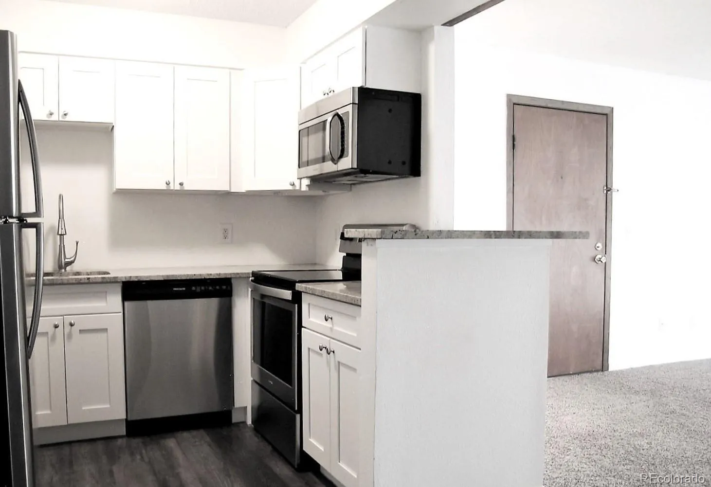 Ground Level – NO STAIRS!. New Kitchen (2019) with White Shaker Cabinets, Soft Close Feature, Slab Granite Counter, Stainless Steel Appliances, Wood Laminate Floor, and a Large Eating Space. Open Floorplan with Spacious Living Room, Wood Burning Fireplace, Large Bedroom with Walk-In Closet, Spacious Full Bath, and Many Other Great Features – Central Air Conditioning, One Reserved Parking Space (#164), Full Size Washer and Dryer, Covered Patio. Convenient Location Close to Red Rocks Community College, St. Anthony’s Hospital, Federal Center, Union Ridge Park, Shopping and Restaurants, and the Parks and Trails of the Foothills Recreation District. Two Light Rail Stations – Red Rocks College Station, Federal Center Station, and the Sixth Ave. Provide Easy Access to Downtown and to the Mountains……………….Showings Only with Ratified Contract. Do not Disturb Tenant.