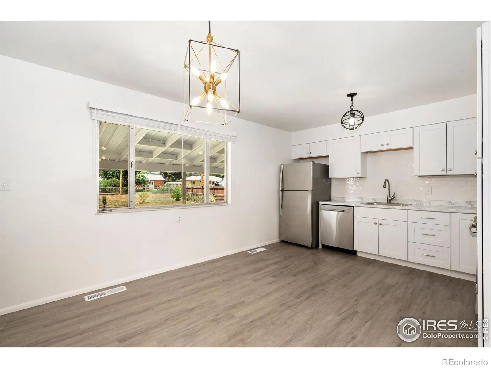 WOW! Totally renovated and dialed in! Super clean and snazzy, fully move-in ready! Buyers will definitely want to experience this totally remodeled, fully updated mid century modern home! This super sturdy mostly all brick ranch style home over full (mostly finished basement with good storage) is also convenient, affordable, & centrally located. Thoughtfully remodeled featuring SS appliances, new designer lighting, kitchen cabinets, countertops, sink, faucet, luxury vinyl plank (LVP) flooring, refinished hardwood floors on the main level & all upper level bedrooms, brand new updated designer tile & LVP in both bathrooms, new blinds throughout, plus all new carpet & fresh light & bright new interior & exterior paint! ALL of the majors are already done here too! Featuring a newer tankless hot water heater, newer furnace WITH A/C & a brand new impact resistant roof, and radon mitigation system too! Large kitchen & dining areas are great for cooking, gathering, & entertaining! This lovely home features 3 bedrooms on the main level & 1 additional bedroom in the basement which also has a VERY large family room/game room area for your friends & family to enjoy. Plenty of off-street parking for many cars, even your boats, campers & trailers too! AS THERE IS NO HOA! Very large lot and backyard backing to greenbelt, also allows enough space to build & add on a large garage in the future if so desired. The backyard is HUGE & has several newly planted fruit trees, a massive covered & shaded outdoor patio, w/ large mature shade trees for enjoying the 4 seasons. The large greenbelt behind makes this home feel even roomier & private too. The basement has tons of storage & shelves in the utility area, w/ a laundry area (hook ups) & room for another bathroom that is already roughed in. Seller will finance for the right Buyer or consider Lease Option or other creative acquisition strategies if desired by Buyer (However a new bank loan would will be cheaper). See it today!