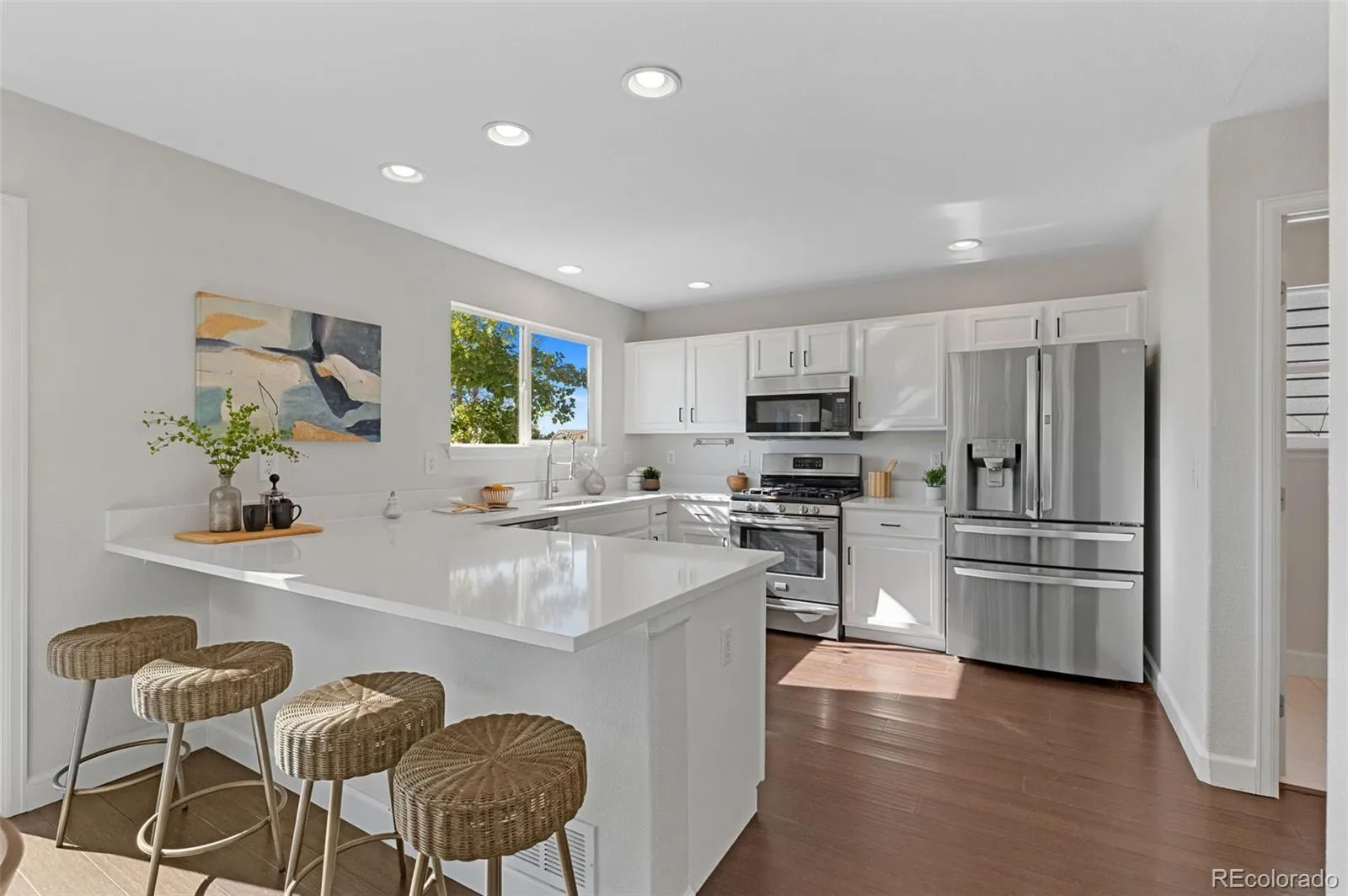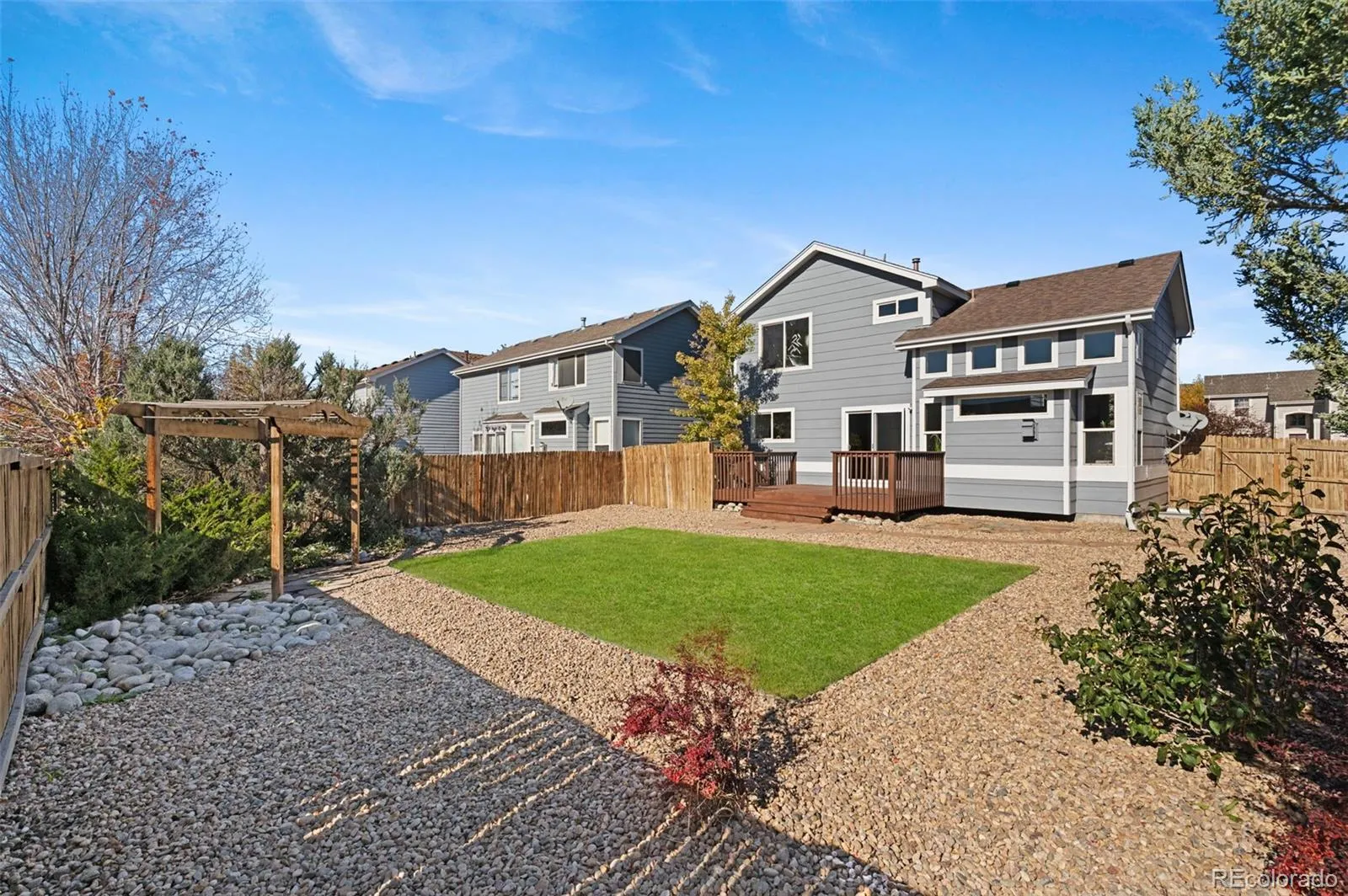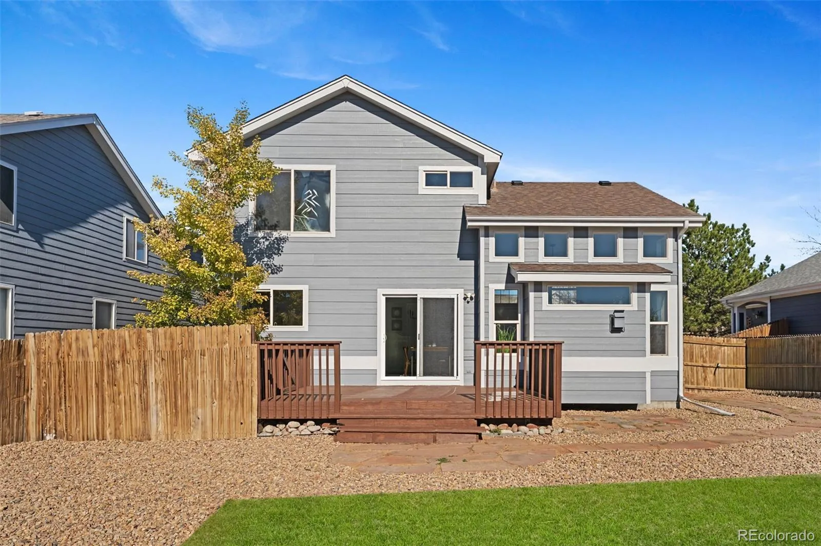 MUST SEE. This fully remodeled 3-bedroom, 3-bath home, built in 2000, sits in a wonderful neighborhood within the highly rated Cherry Creek School District. The home has been fully painted inside and outside. The main level offers an open and warm family room with a vaulted ceiling, cozy fireplace, and refinished flooring. The kitchen has been beautifully updated with new white luxury quartz, newer appliances, and hardware. A convenient powder bath is also located on the main level. Upstairs, the primary suite features its own fully remodeled private bathroom and a large closet. Two additional bedrooms upstairs that share a great sized bathroom. Outside, the home sits on a nice-sized yard with a great refinished deck, perfect for gatherings. The newly landscaped front and back yards create an excellent space for pets, play, and enjoying Colorado evenings. A spacious attached 2-car garage adds plenty of storage and parking. Set on a quiet street with lots of privacy. You’ll enjoy quick access to E-470, Southlands, local parks, schools, plus nearby shopping and dining. Set your showing up today!