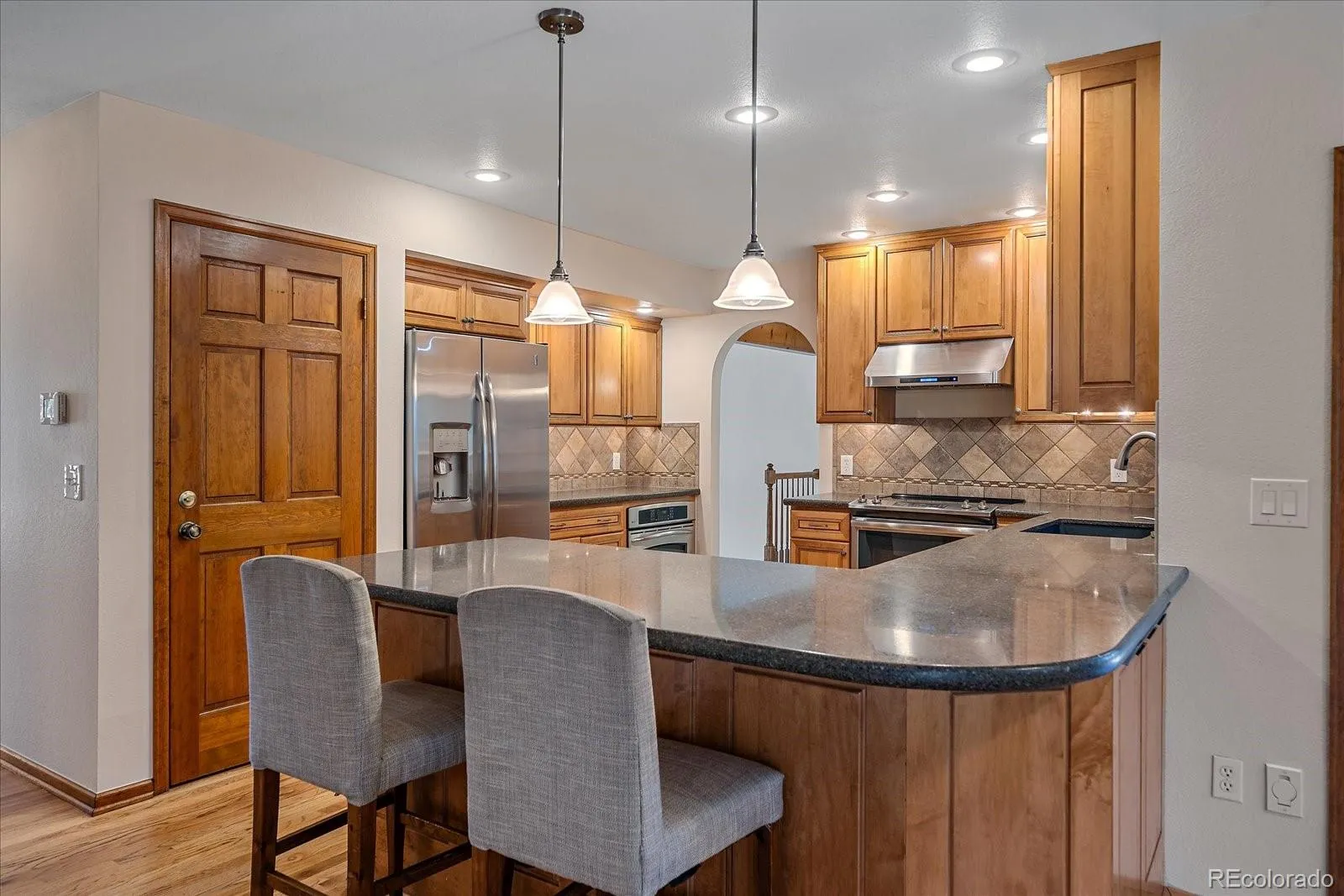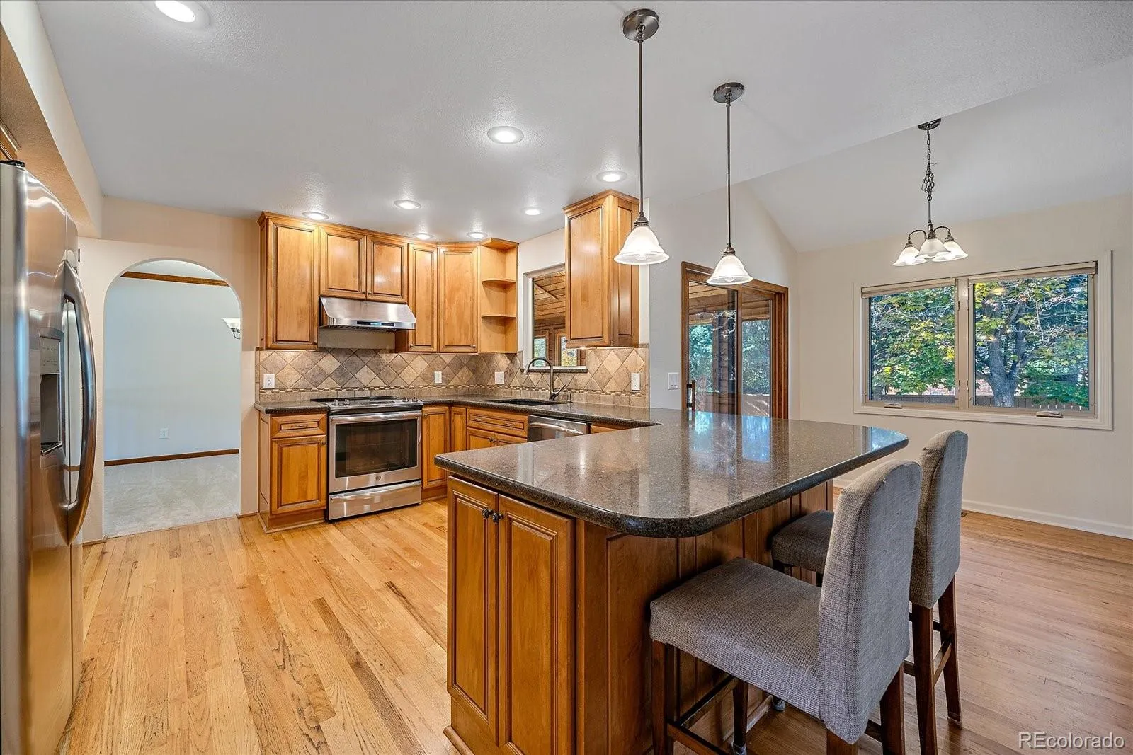 Exquisite Living in the Heart of Piney Creek situated in the coveted Knolls. This home captures the essence of refined Colorado living—offering warmth, functionality. Expansive windows, tall ceilings, and graceful architectural lines create an atmosphere both inviting and elevated. The living room welcomes you with an airy brightness that flows effortlessly into the home’s gathering spaces. offers a peaceful retreat for work or study, while the formal dining room provides the perfect setting for memorable dinners and celebrations. The designer kitchen stands as a true showpiece—showcasing sleek quartz countertops, premium stainless-steel appliances, double ovens, a large breakfast bar, and abundant custom cabinetry. Adjacent to the kitchen, the family room exudes warmth and charm with its cozy fireplace and views of the lush backyard. Sunroom offers an ideal spot for morning coffee, quiet reading, or simply enjoying the serenity of the outdoors. Upstairs, the primary suite feels like a private sanctuary with its walk-in closet and spa-inspired bath. Three additional bedrooms provide comfort and versatility for family / guests. The partially finished basement expands your lifestyle possibilities—perfect for a home theater, fitness studio, or playroom. Step outside to discover your own backyard retreat. The patio, enhanced by an electric retractable awning, invites alfresco dining, evening gatherings, or quiet moments under the stars. Mature trees. fenced yard create a private, park-like ambiance ideal for relaxation and play. Additional features include a three-car garage, a new driveway and sidewalk, and —completing a home designed for comfort and connection. Residents of Knolls at Piney Creek enjoy exclusive access to a pool, clubhouse, tennis courts, and a scenic pond, all within walking distance. Located in the award-winning Cherry Creek School District, and minutes from Cherry Creek State Park, the Off-Leash Dog Park, and Piney Creek Trail ! (Virtual photos)