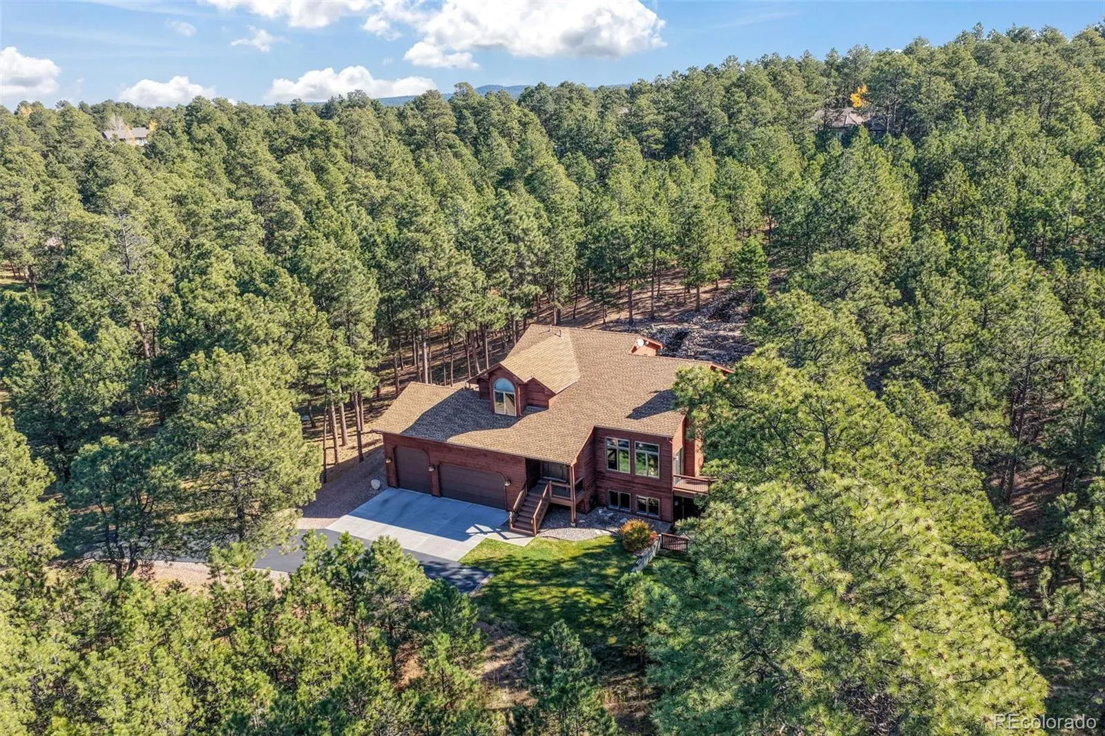 Welcome to this beautiful two-story home nestled in the desirable Bent Tree II community. Situated on 2.59 acres and surrounded by mature trees with a view of Mount Herman, this property offers privacy, natural beauty, and an exceptional setting for outdoor living. Inside, the home greets you with vaulted ceilings and a spacious living room featuring a gas fireplace and large windows that fill the space with natural light. This room also provides access to a private front deck, perfect for relaxing in the peaceful surroundings. The dining room offers a charming window seat and built-in shelving, flowing into the kitchen with granite countertops, stainless steel appliances, and tile flooring. From the kitchen, access the back deck where you’ll find a serene water feature, a beautiful treed backdrop, and a gas line for outdoor cooking and entertaining. The main level includes a laundry room with cabinets, sink, window, and access to the oversized finished garage. A main level bedroom with dual closets and a ceiling fan, along with a full bathroom, completes this floor. Upstairs, the private primary suite features vaulted ceilings, a window seat with mountain views, and dual walk-in closets. The adjoining bath offers double vanities, a large soaking tub, walk-in shower, and a view of the tranquil water feature.The walkout basement includes a large family room with laminate wood flooring, a gas fireplace, and access to a fenced yard ideal for outdoor gatherings or pets. Two well-sized bedrooms, one with dual closets, and an additional full bathroom provide comfort and flexibility. A spacious utility room offers plenty of storage and space for a small workshop. Additional features include a new roof coming soon, extra-tall third garage bay door, whole-home humidifier, UV air purifier, new wood deck, and beautifully maintained landscaping. Located at the end of a cul-de-sac, this property combines tranquility, space, and outdoor enjoyment in the heart of Bent Tree II.