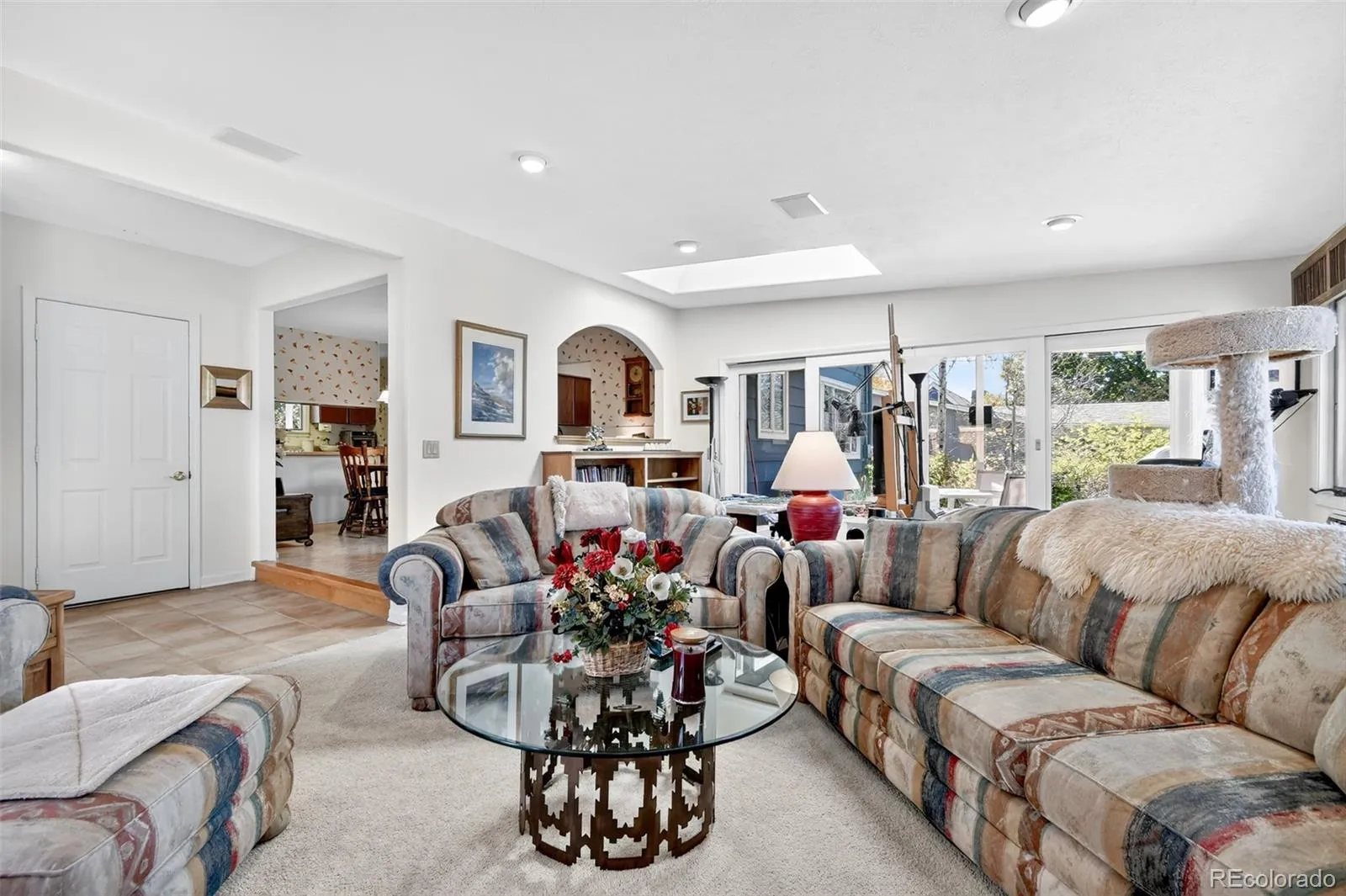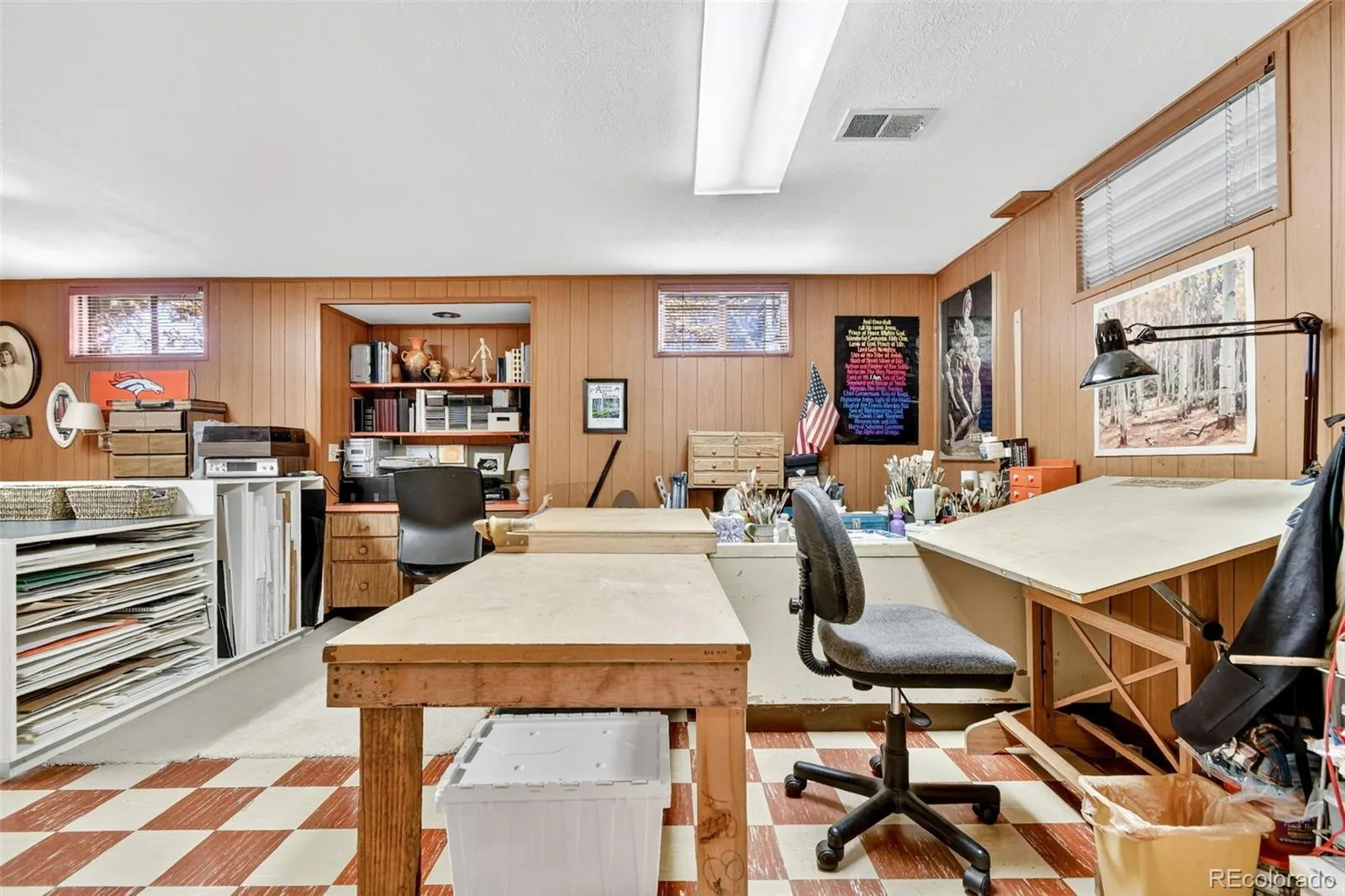 Step through the front door into an open-concept living and dining area highlighted by an original custom sandstone fireplace. Just beyond, enjoy a built-in wet bar and an adjacent powder room—perfect for entertaining. The kitchen is bright and efficient, featuring a built-in oven, cooktop, and a charming east-facing window that welcomes the morning light. An adjoining flex area offers space for a home office or casual dining, overlooking the beautifully landscaped backyard. One of the true highlights of this home is the rare, open-concept main floor family room. Complete with a gas log fireplace and air conditioning, it’s a cozy retreat for relaxing on cool evenings or warm summer days. Upstairs, the primary suite features a fully remodeled ensuite bath, while two additional spacious bedrooms share an updated hall bath. Outside, the private backyard is a serene oasis with mature trees, raised garden beds, and two detached sheds—one ideal for use as a workshop. Whether you’re a gardener, hobbyist, or simply love outdoor living, this yard is ready to be enjoyed under Colorado’s 300+ days of sunshine. The basement adds even more versatility with a large open room perfect for crafts, games, or a future bedroom. You’ll also find a laundry area with bonus storage and a private office or studio space currently used as an artist’s retreat. Additional updates include double-pane windows, newer glass sliders, and a newer roof. The included freezer in the basement is a bonus touch. This home has been lovingly maintained for many years and is ready to welcome its next proud owners!