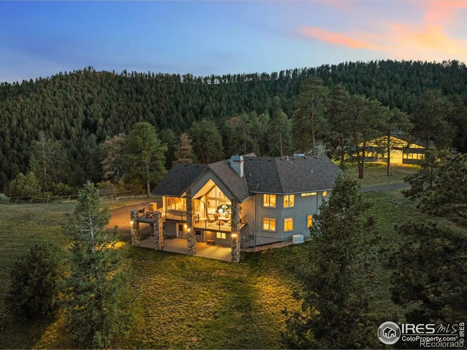 Tucked above the metro and bordering gorgeous Mt. Falcon Park, this is the first time this picturesque equestrian estate has ever been offered on the market. This stunning property offers the rare combination of turnkey equestrian amenities and a welcoming, custom home to create your perfect private retreat. Follow your own trails directly into the bordering park, admire the wildlife from the oversized wrap-around deck, and enjoy everyday serenity with four fireplaces and soaring, view-filled windows. The light-filled, custom home anchors the property with 4 bedrooms, 3 bathrooms, and an inviting indoor-outdoor flow. Vaulted great room, chef’s kitchen, and generous dining spaces make entertaining effortless, while the primary suite offers its own retreat with a private balcony. The fourth bedroom also offers the perfect office setup, and the lower level provides for your guests with two bedrooms, additional living space, and a full bath. This property is truly built with the equestrian in mind, with an exceptional 8-stall barn and an indoor arena framed by three walls of windows, setting the standard in equine estates. With a 2-bedroom caretaker’s apartment for staff, guests, or multigenerational living, you have a rare, fully self-contained compound that’s both practical and stunning. Property Highlights: 66′ x104′ Indoor arena with three walls of windows for natural light and year-round training. 8 stalls with Dutch-Doors and attached runs, heated tack room, separate feed, tool, and shaving storage rooms. H/C wash rack, 3/4 barn bathroom, barn laundry room, and oversized equipment storage. 2-bedroom apartment above the barn with its own 2-car garage and private entrance.Peaceful, gated community setting with quick access to town amenities, C-470, and Denver. There truly has not been a more exceptional private equestrian retreat to hit the market in decades. This may be your only chance at what is truly a once-in-a-lifetime property.