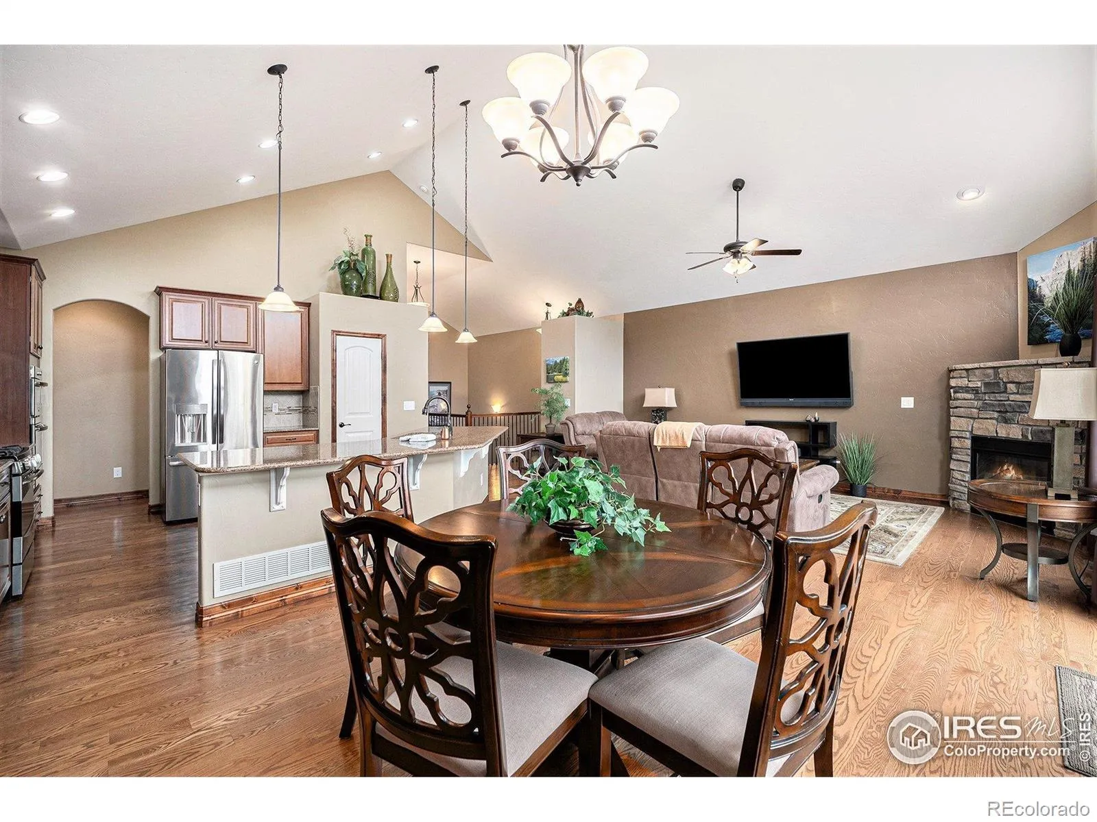 Welcome Home!!! This stunning 6-bedroom, 3.5-bath ranch home located in an established Johnstown neighborhood with NO METRO TAX!! Offering a spacious open floor plan and thoughtful upgrades throughout, this home perfectly combines comfort, function, and style. Step inside to find bright, open living spaces ideal for both everyday living and entertaining. The kitchen features ample cabinetry, modern finishes, and a large island overlooking the dining and living areas. The primary suite serves as your private retreat, complete with a luxurious 5-piece bath and generous walk-in closet. Downstairs, the beautifully finished basement includes a full wet bar, perfect for hosting guests or enjoying a cozy movie night. With six bedrooms, there’s plenty of flexibility for home offices, hobbies, or guest rooms. Outside, the meticulously landscaped yard is designed for enjoyment and ease of care. You’ll love the two raised garden beds, ideal for growing your own vegetables or flowers, and two private outdoor spaces perfect for enjoying Colorado’s seasons.Located close to shopping, dinning, and with easy access to I-25, this home offers both convenience and community charm. Don’t miss your chance to own this beautifully maintained home in one of Johnstown’s most desirable neighborhoods – where space, upgrades, and location come together perfectly!