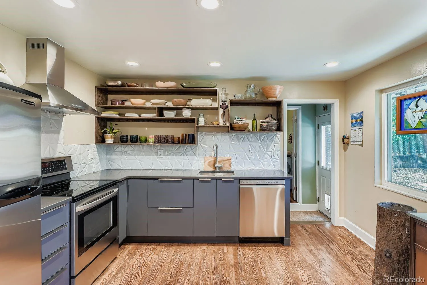 OPEN HOUSE: Saturday November 1st 3-6pm, and Sunday November 2nd 12-2pm. Step into a home that radiates soul, creativity, and individuality. This eclectic brick ranch isn’t just a house — it’s a storybook of character, color, and warmth, blending vintage details with personal flair to create a space that feels both nostalgic and refreshingly alive. From the moment you walk in, you’re welcomed into a cozy living and dining space filled with natural light from the large updated windows. Each room has its own unique character, offering a comfortable and inviting feel that makes the home easy to love and easy to live in. The home’s mid-century bones and brick exterior set the stage for its unique charm, while the interior exudes a timeless comfort that’s impossible to replicate. The primary bedroom features a gas fireplace, adding warmth and a classic touch to the space. Step outside and discover a backyard oasis that feels like something out of a hidden garden — apple, raspberry, plum, and rhubarb plants mingle with rose bushes, blooms, and butterfly-attracting perennials. It’s a space designed for connection with nature, where mornings begin with birdsong and evenings end in the warm glow of the setting sun. Beyond the main home, the heated ADU stands out as a truly unique space, complete with a garage-style door that adds a modern, industrial touch. With plenty of flexibility, it’s perfect for a yoga or workout studio, creative workspace, home office, or private retreat. Located in one of the most convenient yet serene areas near the foothills, you’ll enjoy easy access to Green Mountain, I-70, C-470, 6th Avenue, and the light rail, as well as a park with pickleball and tennis courts just a block away. It’s the best of both worlds — a tranquil haven close to the pulse of the city and the gateway to the mountains.