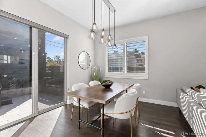 Urban luxury meets Littleton charm in this exceptional townhome just steps from vibrant Main Street. Offering over 3,200 sq ft, this 3-bedroom, 4-bath home with a main-floor study combines upscale design with a walkable, low-maintenance lifestyle. Enjoy the rare convenience of an attached oversized 2-car garage plus three inviting outdoor spaces—a fireside courtyard, a private backyard retreat with a relaxing hot tub, and a patio off the primary suite. The stunning kitchen features a large island, high-end appliances, and an open flow into the dining and family rooms—ideal for gatherings or everyday living. Expansive glass doors connect seamlessly to the outdoor areas, creating bright, open spaces that bring the outdoors in. Upstairs, the primary suite offers a generous layout and private patio, while a second bedroom and laundry complete the level. The finished basement provides a second living area, bedroom, bath, and great storage. Beautiful hardwood floors, plantation shutters, and designer touches add warmth and sophistication throughout. Tucked on a quiet street yet just a short stroll to restaurants, coffee shops, and boutiques, this home perfectly balances urban energy with refined comfort. Be sure to check out the exciting improvements coming to Downtown Littleton at Project Downtown Littleton—a thoughtful plan to enhance walkability, outdoor dining, and the overall downtown experience.