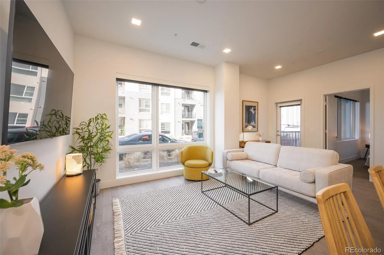 Perfectly located one bedroom – two bathroom condo in the heart of South Broadway and walkable to all the dining and shopping in Platt Park on Old South Pearl Street! Newly constructed in 2021, this spacious condo boasts an open floor plan with floor to ceiling windows, that let in tons of natural light. The kitchen is equipped with a gas range, stainless appliances, quartz countertops, sharp looking white cabinets with subway tile backsplash, and a large island perfect for hosting. The large primary suite includes privacy blackout shades, an ensuite bathroom, and walk in-closet. The usable flex space across from the SECOND bathroom includes a washer and dryer and is perfect for a den, guest quarters, office or gym. The private patio off of the living room offers a gas hookup for a grill. The building also includes a rooftop deck with outdoor fireplace and stunning views of Downtown Denver and the snow-capped Rocky Mountains, as well as a quaint second floor courtyard all for a very low monthly HOA! The unit includes one deeded parking space in the secured, gated garage and the HOA allows short term rentals over 30 days. Close to Harvard Gulch Park, Ruby Hill and Levitt Pavilion, Overland Park Golf Course and the Farmer’s Market on Old South Pearl Street! This location truly has it all! This home qualifies for the community reinvestment act providing 1.75% of the loan amount as a credit towards buyer’s closing costs, pre-paids and discount points. Contact listing agent for more details