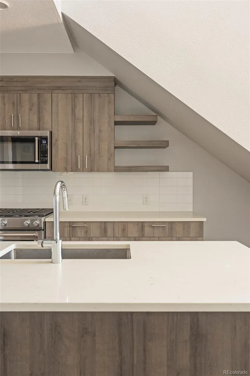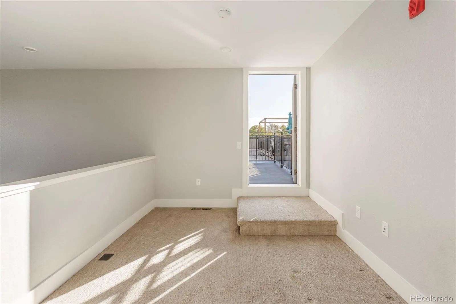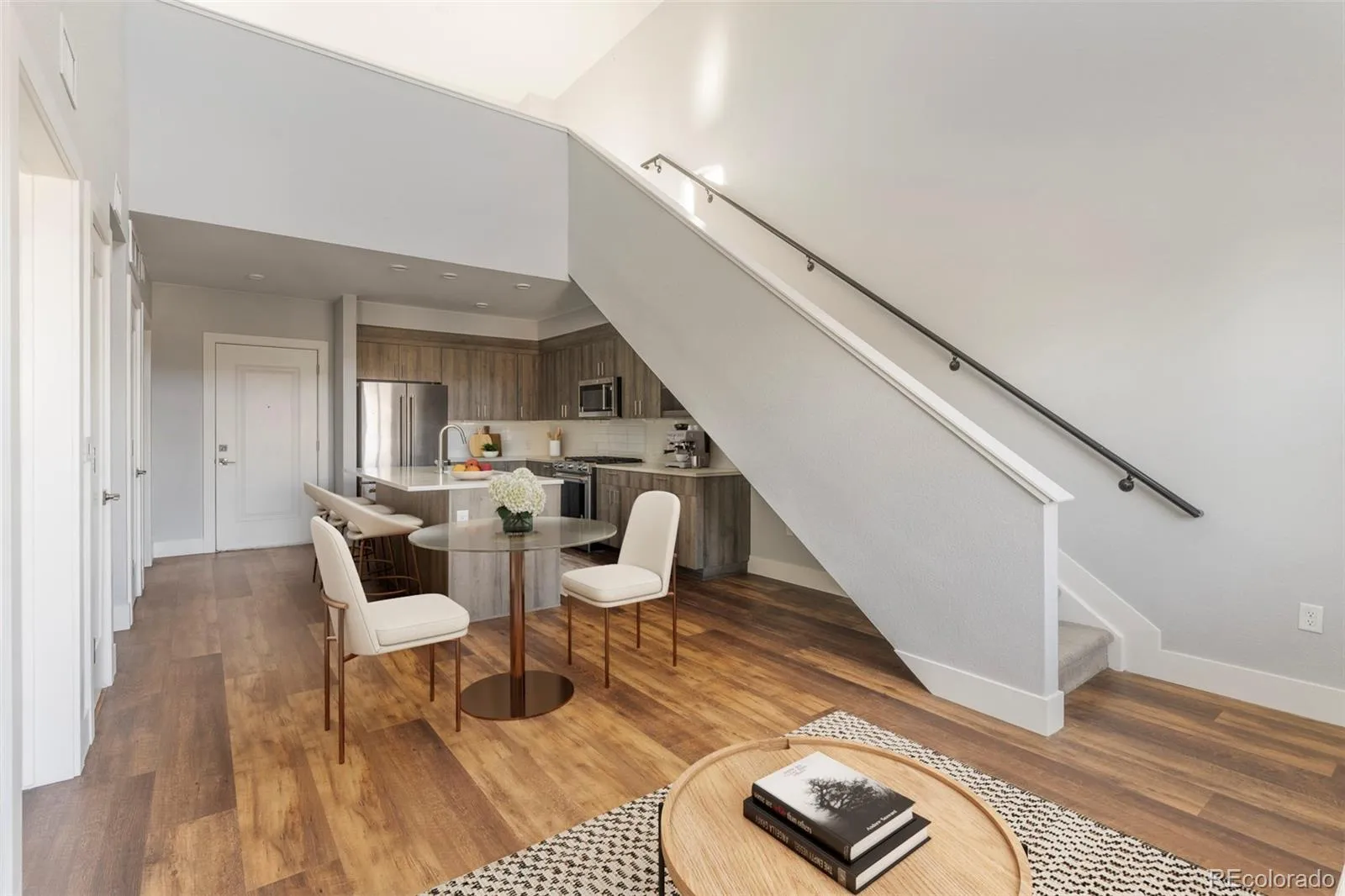 Lofted urban living reaches new heights in this stunning top-floor residence nestled in Speer. Soaring two-story ceilings and abundant windows bathe the open living space in natural light, creating a bright and modern retreat. Light, neutral wall color is perfectly complemented by beautiful flooring. The stylish kitchen inspires entertaining with an oversized center island, stainless steel appliances and sleek cabinetry with modern hardware. A spacious bedroom features a walk-through closet and a serene bath with a walk-in shower, while the versatile loft offers space for a home office, fitness area or lounge. Escape outdoors onto the private rooftop deck to take in panoramic city and mountain views, the perfect setting for enjoying al fresco gatherings in the Colorado sunshine. Built in 2018 and meticulously maintained by its single owner, this residence pairs contemporary design with urban convenience — just moments from Wash Park, vibrant restaurants, bars and coffee shops.