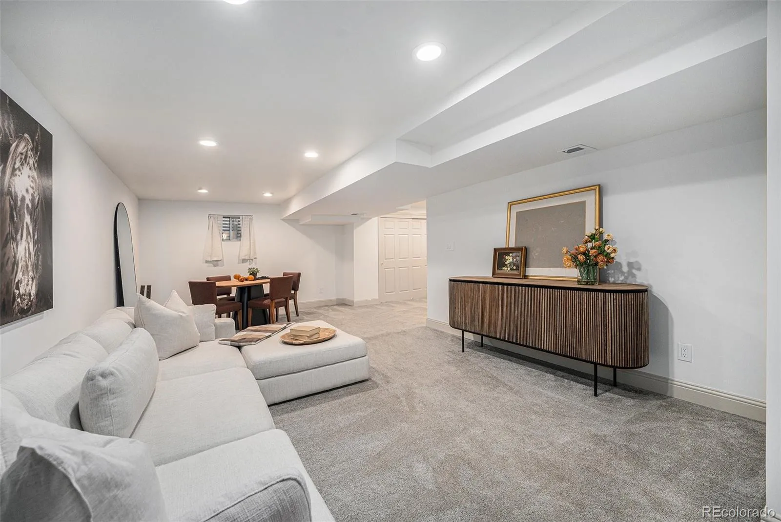 Upstairs offers 4 bedrooms and 2 updated bathrooms, including a vaulted primary suite with walk-in closet, large tiled shower, double vanity, and a serene balcony with new trex decking and metal railings. Upstairs has the laundry room of your dreams!! -very spacious with herringbone floors, built-in storage, and a desk. The finished basement includes space for a family room, game area, workout zone, plus a brand-new bathroom with a tile shower.