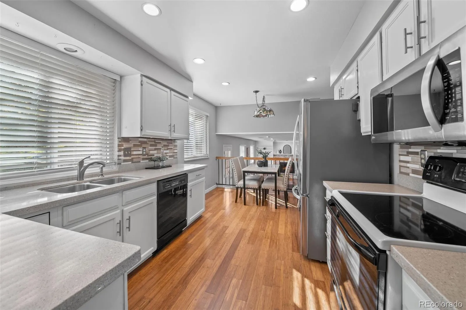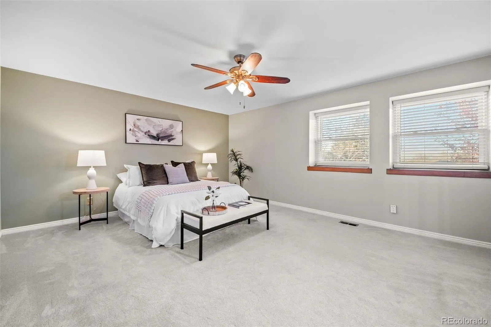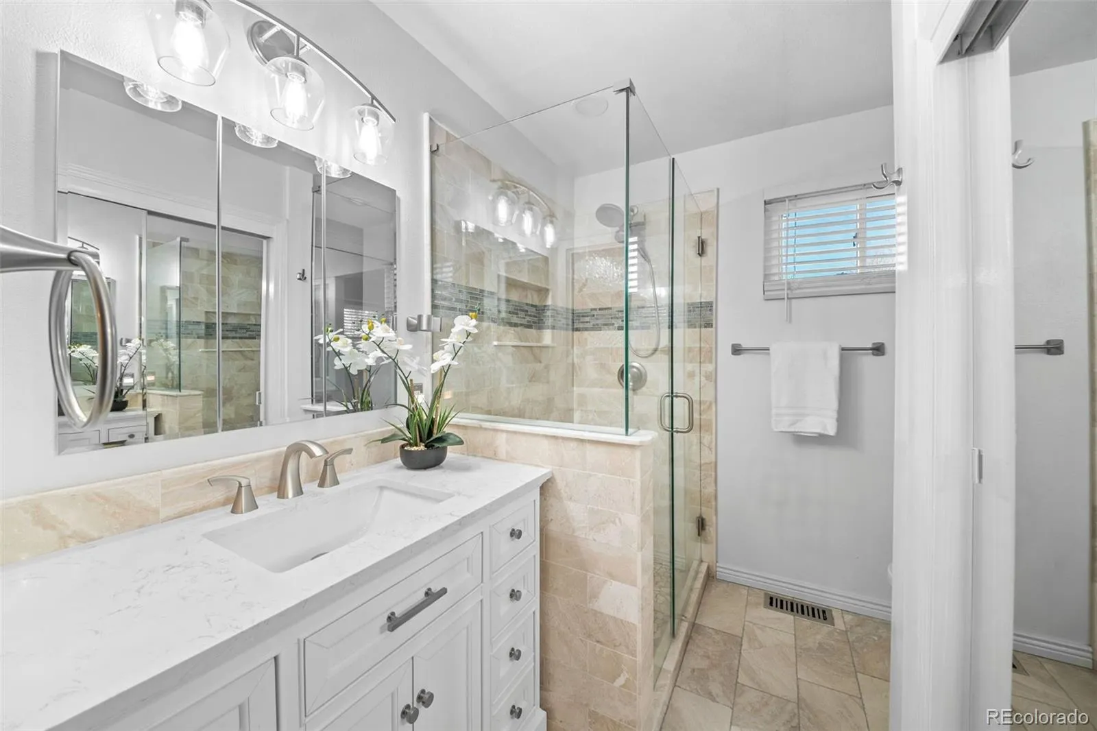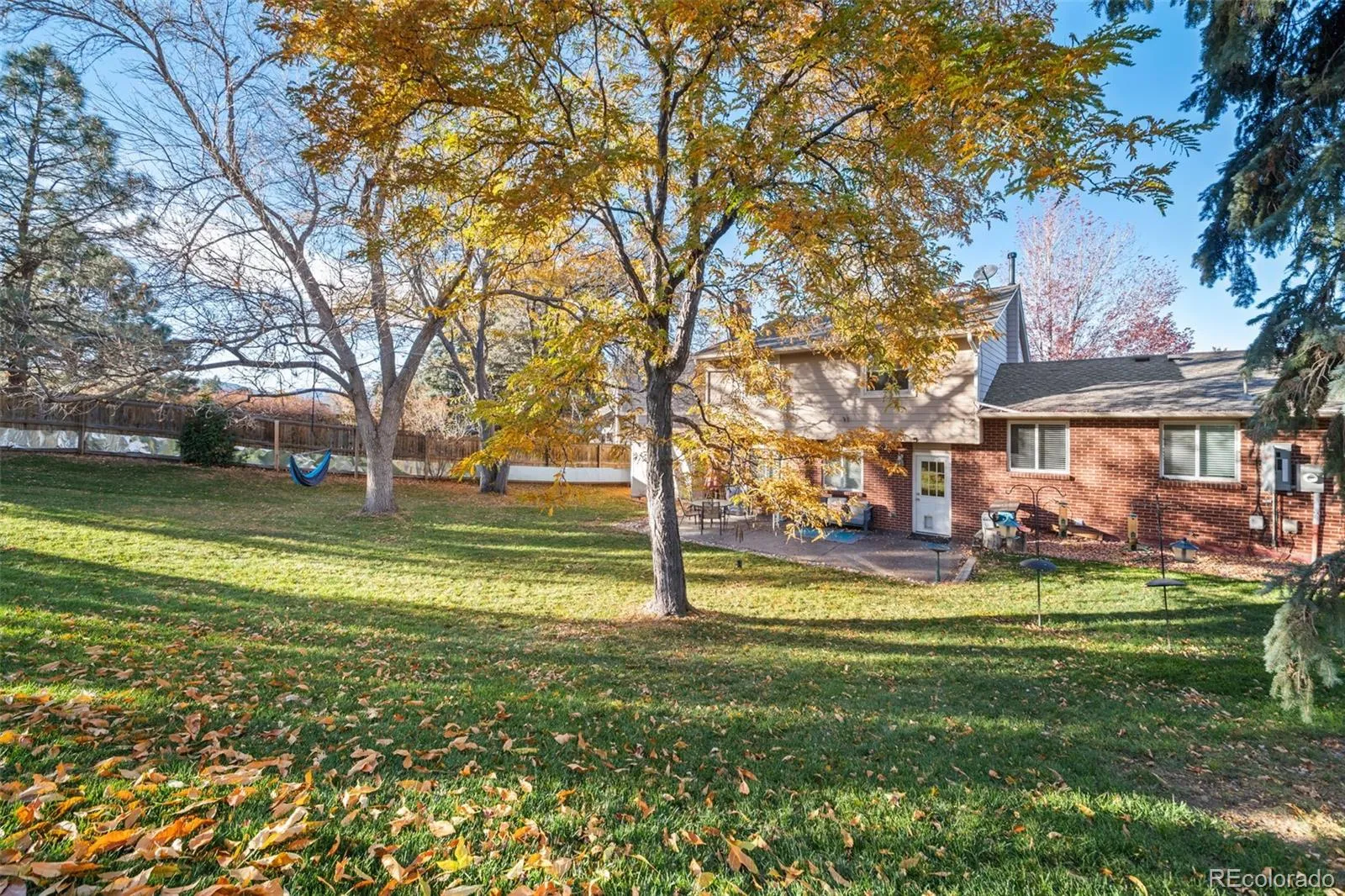 Nestled on a quiet cul-de-sac, this beautifully maintained home sits on an expansive .26-acre lot surrounded by mature landscaping, offering privacy and plenty of room to relax, garden, or entertain. Step inside to discover a thoughtful floor plan featuring 4 bedrooms, 3 bathrooms, and over 2,800 square feet of living space. The main level showcases rich wood floors, a welcoming formal living and dining area, and a spacious eat-in kitchen with Corian countertops and ample cabinet space. The cozy family room, complete with a wood-burning fireplace, opens seamlessly to the backyard, stamped concrete patio. Perfect for Colorado evenings spent with family and friends. Upstairs, you’ll find three generously sized bedrooms and two baths, including a primary suite with a gorgeous en-suite bath remodeled with italian marble. The finished basement provides additional versatility with a fourth bedroom – ideal for guests, home office, gym, or multi-generational living.