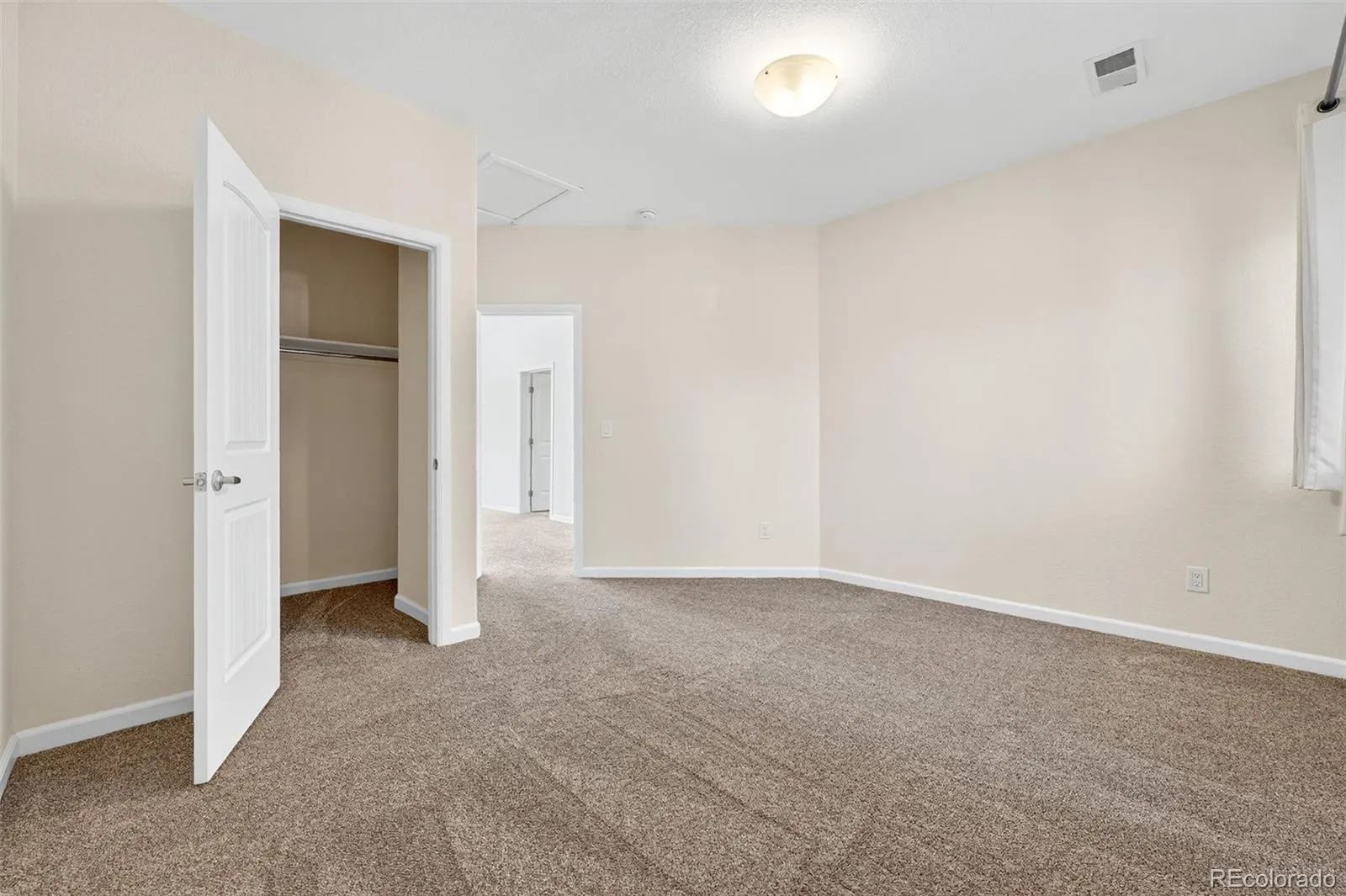 The main level offers a versatile bedroom with French doors, a full bath, and a convenient laundry room. Upstairs, you’ll find four additional bedrooms and a small loft area, including the expansive primary suite, complete with a walk-in closet and a luxurious five-piece bath with a deep tub and dual vanities.