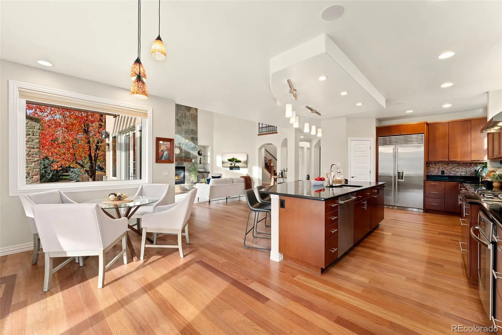 Move-in ready and meticulously maintained, it’s a rare find in Spring Creek. Luxury living meets modern comfort in this beautifully updated home in Lafayette’s premier Spring Creek neighborhood. With nearly 6,400 sq ft of space, every detail was designed for style, function, and entertaining. Highlights you’ll LOVE: A Chef’s kitchen with stainless appliances, double ovens, large island, and granite counters * Open-concept great room with vaulted ceilings, stone fireplace, and wall of windows * Main-floor office with custom built-ins – perfect for remote work * Primary suite retreat with spa bath and expansive walk-in closet * FINISHED BASEMENT with wet bar, theater setup, and steam shower * NEW PAINT, CARPET, and REFINISHED HARDWOOD FLOORING throughout * Designer finishes, fine details in stone, tile, granite & wrought iron. * FIVE-CAR GARAGE with 220V EV outlet + extra driveway parking * Lush backyard oasis with covered patios, built-in BBQ, hot tub, and greenhouse. Situated on a quiet cul-de-sac, this property offers rare privacy and outdoor space. Mature trees, mountain views, and landscaped gardens make it ideal for gatherings or peaceful evenings under Colorado skies. Minutes to downtown Lafayette, Boulder, top-rated schools, trails, and parks. Enjoy the serenity of suburban life with easy access to all the amenities you love. This home combines luxury craftsmanship with everyday livability – perfect for those who love space, quality, and connection to nature.