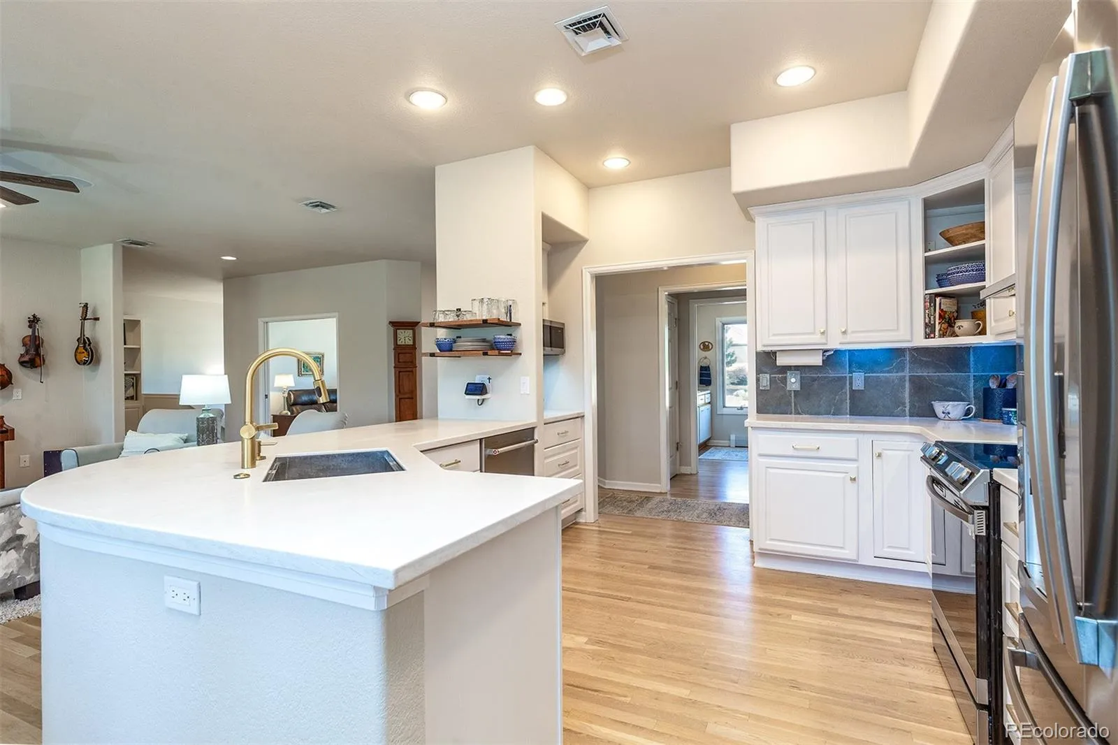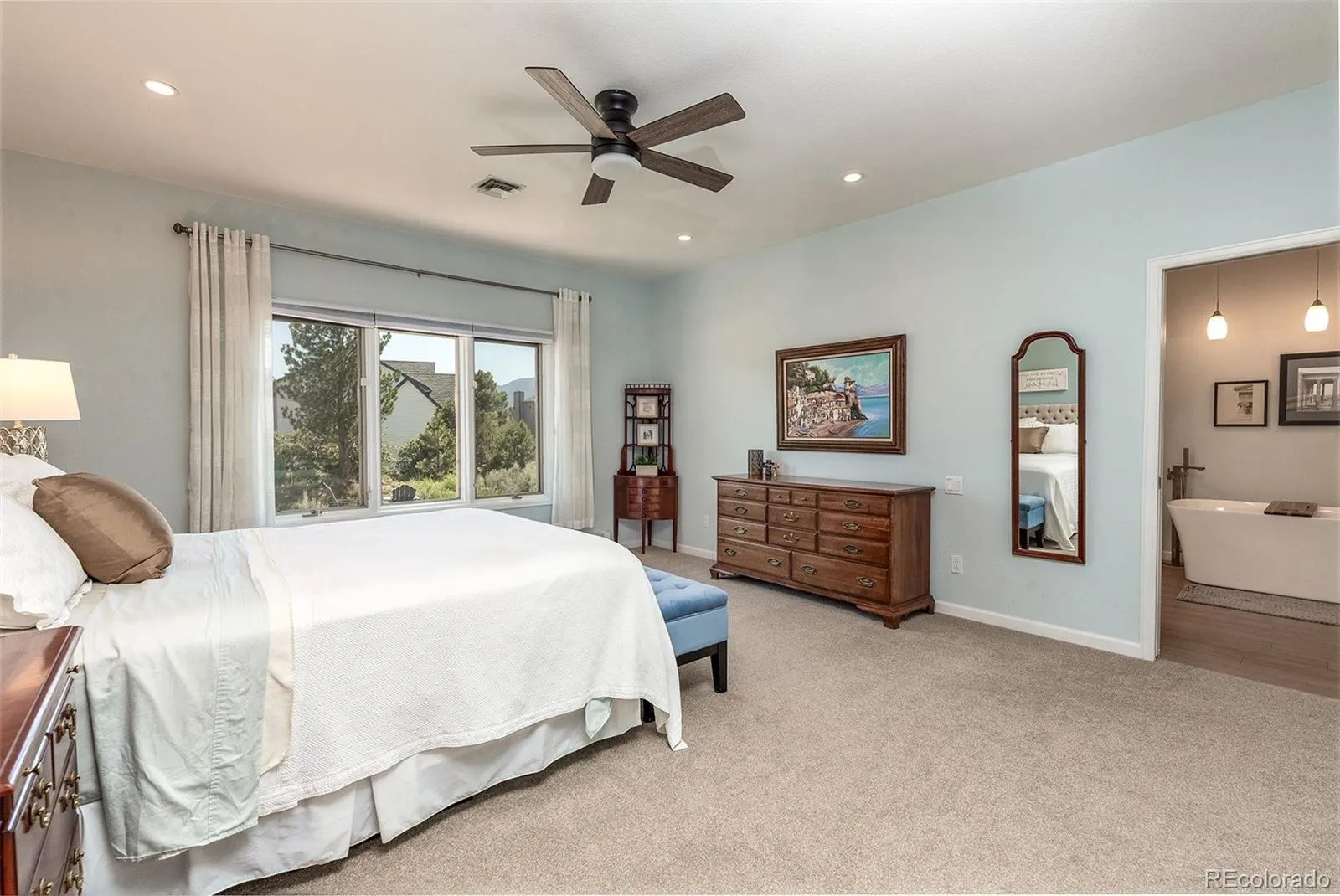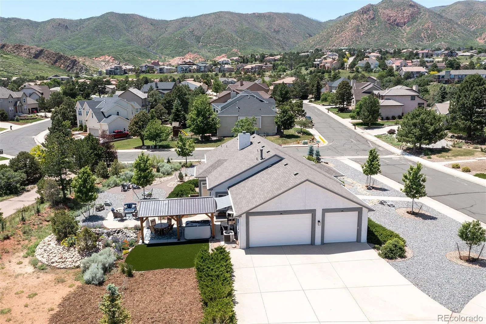You found it! This west side, beautifully updated Colorado dream home with all main level living and spectacular views from every window awaits you on a gorgeously landscaped, large, private corner lot in highly coveted Mountain Shadows. This 3 bedroom, 3 bath, oversized 3 car garage rancher includes a main level study/den and a separate sun-kissed sunroom with walk out overlooking a mesmerizing water feature with pond, stunning landscaping, and awe-inspiring foothill views. This rare find has been exquisitely remodeled and completely transformed from floor to ceiling and interior to exterior over the last 3 years. The work is done! You’ll appreciate the bright, open living room with white oak flooring, a fully updated kitchen with new cabinetry, stainless steel appliances, ground quartz counters, a coffee bar, and an open dining area from which to enjoy views galore! The main level is barrier free and features wide hallways, an abundance of natural light and a retreat worthy primary suite with a spectacular, fully remodeled ensuite bath with separate soaking tub, massive walk in dual showers and a spacious walk in closet. The large laundry room with built in sink and cabinets and a half bath off the kitchen complete the main level. Two additional bedrooms, a full bath, TV area and extensive rec space with pool table, built-ins and a dry bar are enjoyed on the lower level. The unfinished space, now used as an extended game room, allows for a 4th bedroom and/or an expanded bath. But your Colorado lifestyle begins outdoors under the huge 26’x12′ gazebo with hot tub overlooking the spectacular water feature and second 19’x17′ patio with mountain views. Other features and updates: newer roof (2022), new interior paint & exterior trim, motorized blinds, new carpet, outdoor kitchen area, astro turf, xeriscaped lot, 3 zone boiler, 2 water heaters with recirculation pump for faster hot water – and so much more. This is Colorado living at its best!