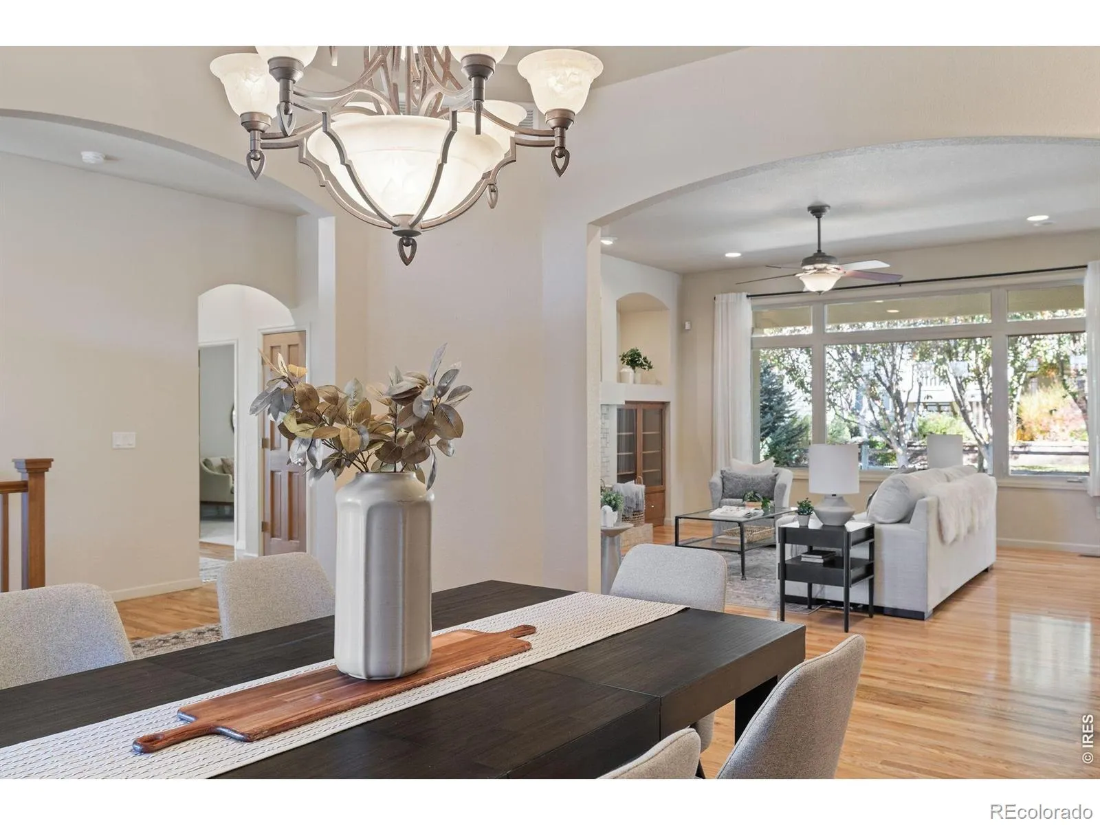 At 5,188 square feet, this expansive ranch-style home, one of the largest floorplans built by Hardford, sits on a generous lot with mountain views from the front porch. Its a five-bedroom, four-bath residence blends timeless craftsmanship with modern comfort. Interior features include soaring ceilings, oak hardwood floors, plantation shutters, and sun-filled living spaces. The open great room with gas fireplace flows into a gourmet kitchen with granite countertops, abundant cabinetry, prep island, bar seating, and high-end appliances including an induction cooktop and refrigerator. The main floor offers three bedrooms, including a private primary suite with new carpet, fresh paint, walk-in closet, spa-like bath with soaking tub and separate shower, and direct access to the back patio. A Jack-and-Jill bedroom suite completes the main level. The finished basement includes a spacious recreation room with wet bar, two additional bedrooms, full bath, excellent storage, and room for future expansion so you can finish it out the way you want! Enjoy outdoor living in the private, fenced backyard with mature trees, lush landscaping, and an oversized covered patio with skylights and ceiling fans. Additional features include a 1,064 sq ft climate-controlled three-car garage with epoxy floors, new washer, radon mitigation system, and newer furnace, AC, and dual water heaters. No Metro District, feeds to Poudre Schools, quiet, mature neighborhood with large trees, yet still close driving proximity to I-25 & the Hwy 34!